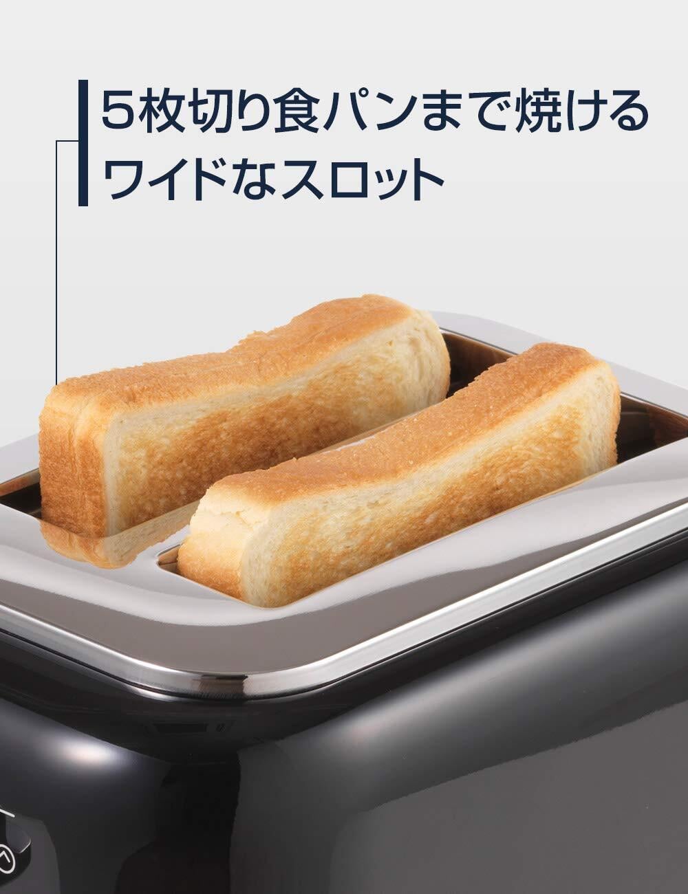10枚切から5枚切食パンに対応。パンは厚みにかかわらずスロット中央に配置され、均一に焼けます。