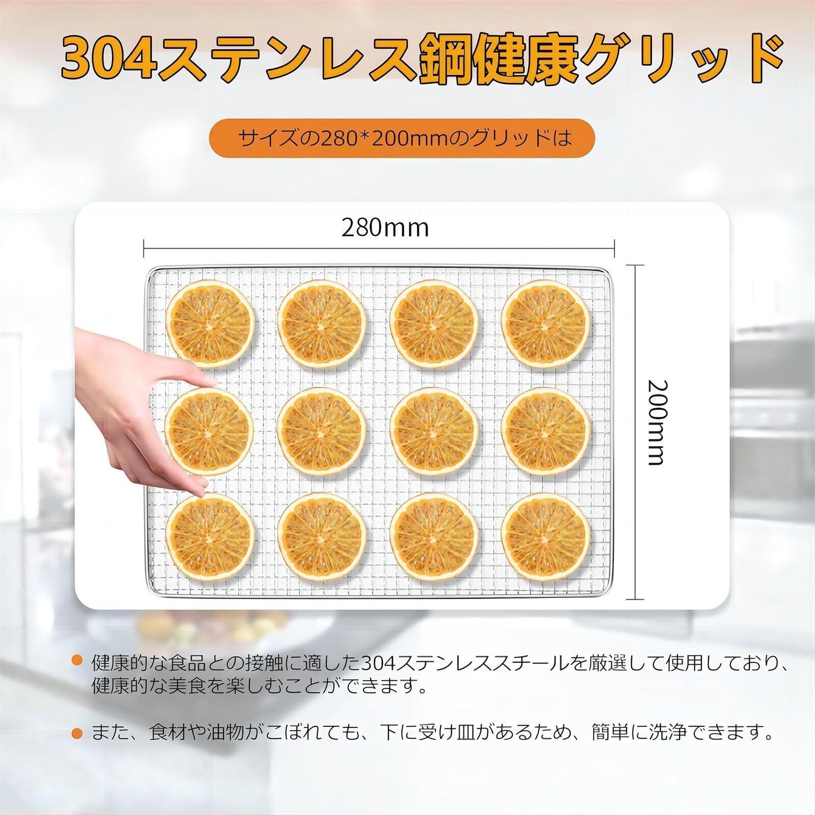 【健康材質& 低騒音食品脱水器は食品級ステンレス製で、食品の食感と栄養を保つだけでなく、安全で信頼性の高い健康食品を簡単に作ることができます。内蔵されたLEDライトは、闇い場所でも透明ガラス扉越しに食物の乾燥効菓を確認できます。