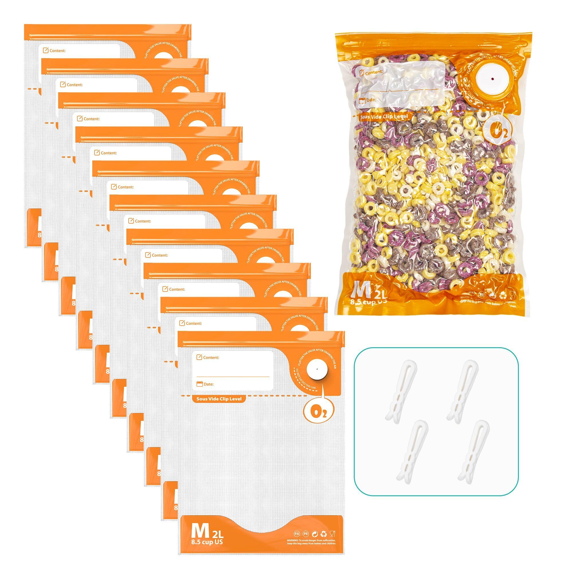 【セット内容】:真空シーラーバッグ×10(サイズ:20*30cm)、シーリングクリップ×4をお届けします。これらの真空調理バッグは、ナッツ、ビスケット、米、果物、野菜など、固形食品や半固形食品の保存に使用できます。家庭や屋外でペットのおやつや小物、雑誌などの収納バッグとして使用できます。