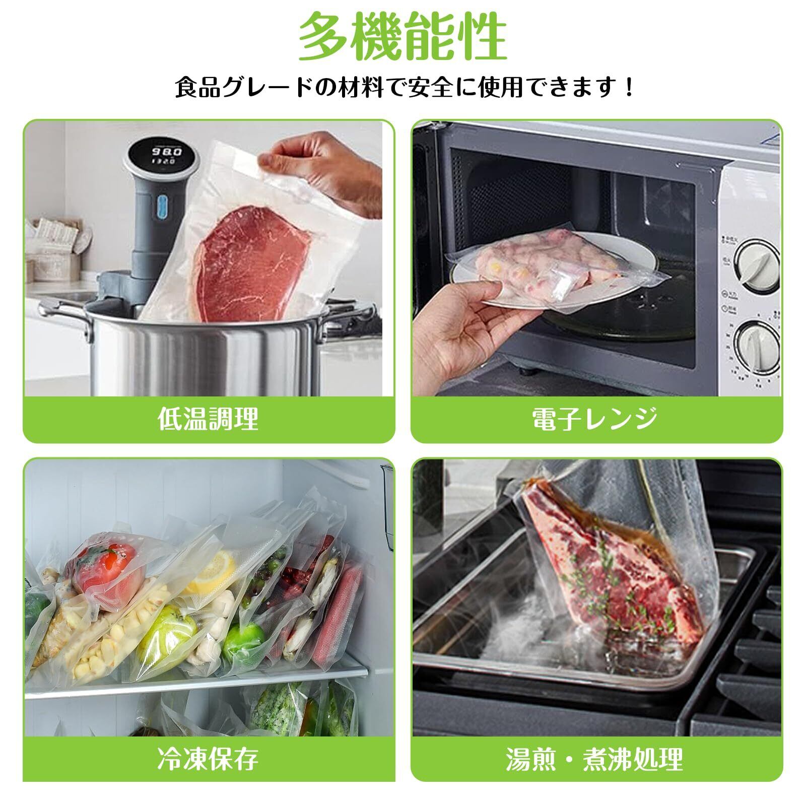 【多様なシーンで活躍】野菜、ドライフルーツ、チーズ、肉、調理済み料理、穀物、紅茶など、様々な食材の保存に最適です。ご家庭の日々の料理はもちろん、鮮度管理が求められるプロの現場(日本料理店・レストラン・ホテル・精肉店・寿司店・鮮魚店・ラーメン店・和菓子店など)でもご活用いただけます。
