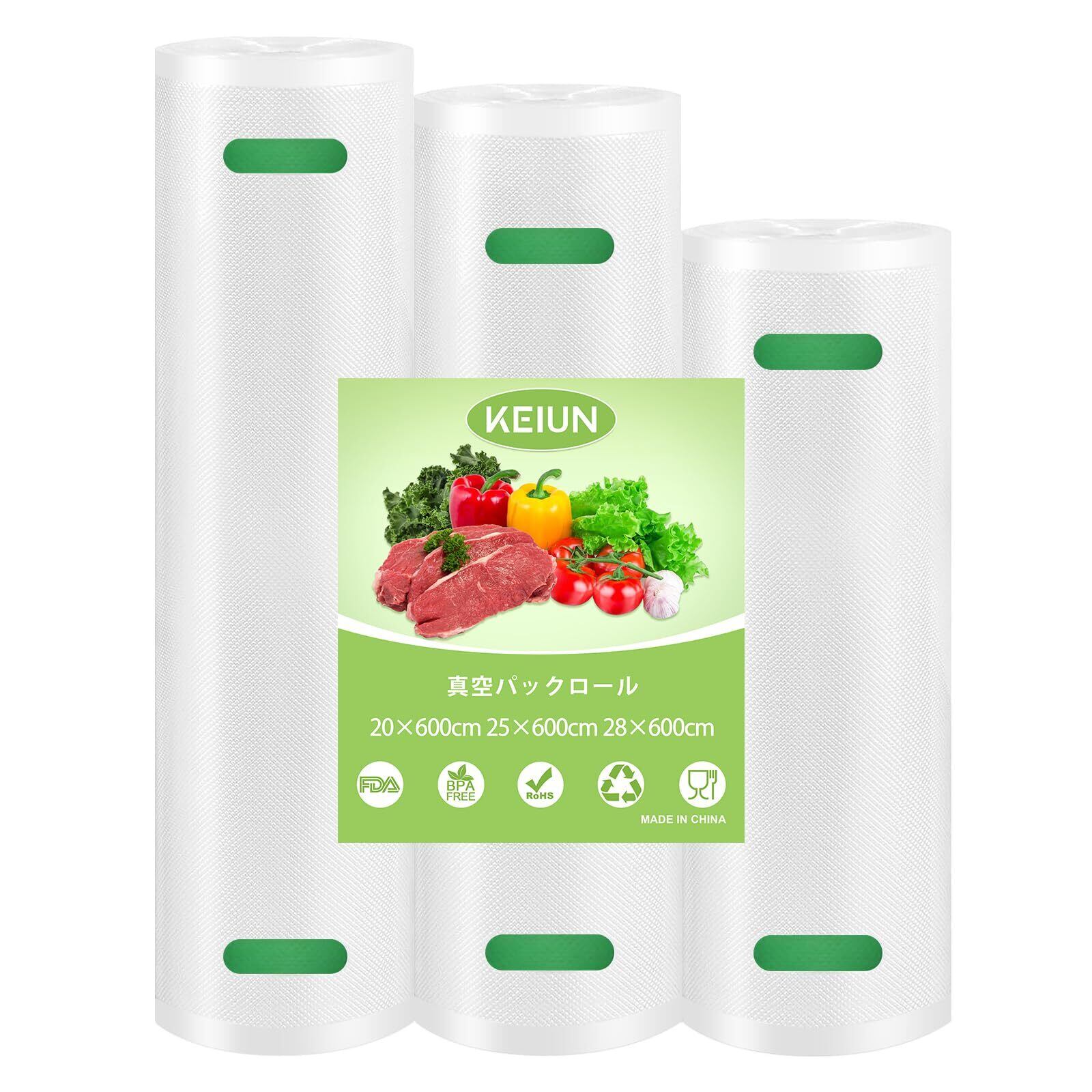 KEIUN 真空パック袋 真空パックロール 20*600cm 25*600cm 28*600cm 3本セット - 真空パック機専用ロール 替えロール 真空ビニール エンボス加工 真空包装袋 専用抗菌袋 脱気密封 鮮度長持ち 食品保存 低温調理 PA+PE安全素材 自由にカット 家庭用 業務用
