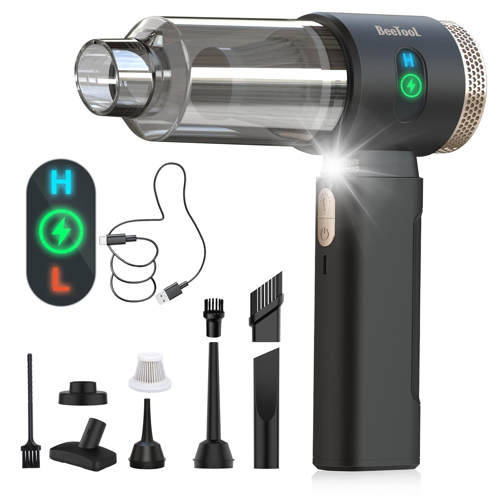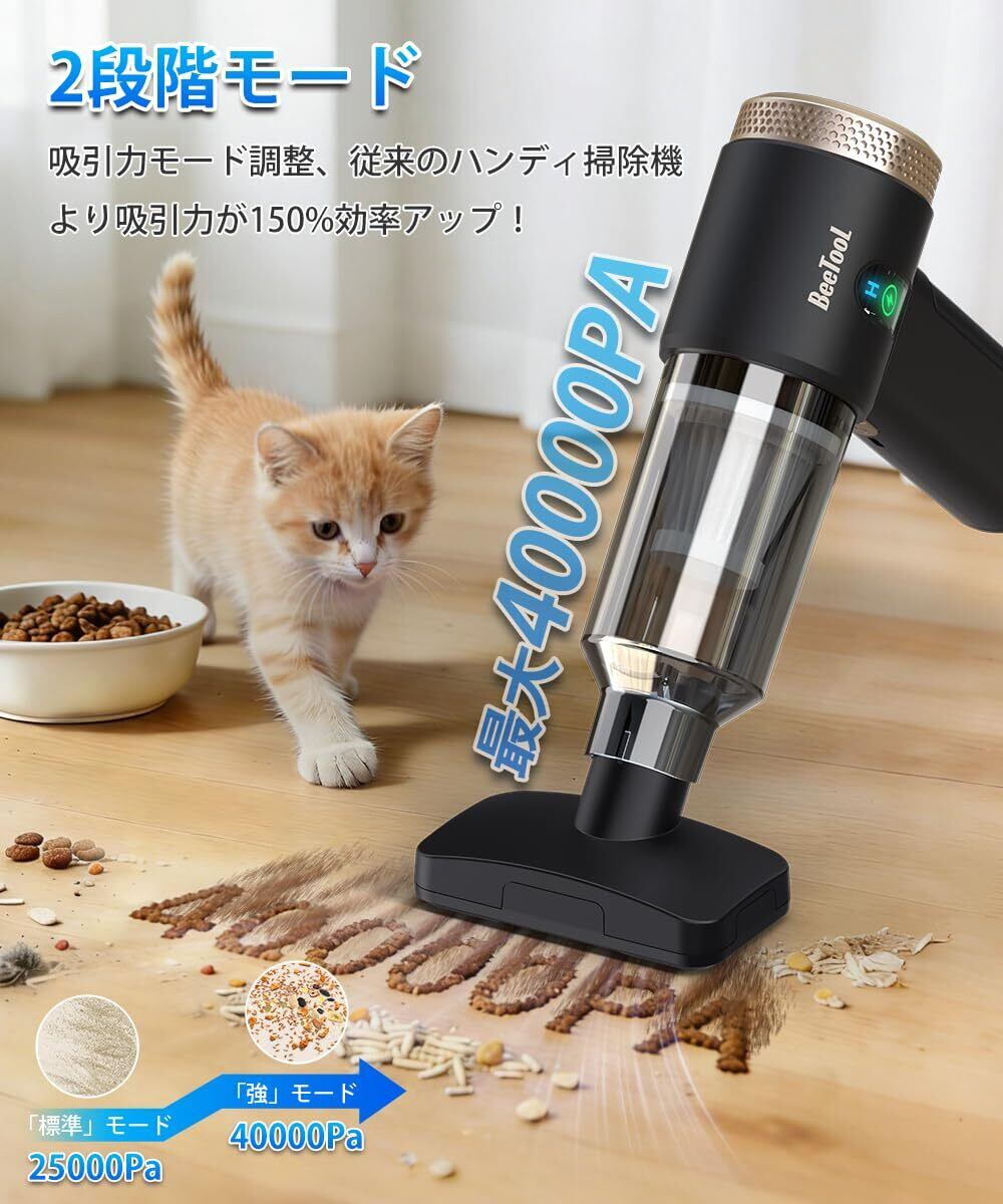 業界初! ハンディクリーナー 40000Pa 強力吸引力 BeeTool ハンディ掃除機 多機能 小型掃除機 6000mAh大容量バッテリー 長時間稼働 コードレス 吹き飛ぶ/吸い込む/空気入れ/空気抜き 軽量 乾湿両用 Type-C充電式 メーカー付 人気 業務用/車用清掃/家具/家庭用 ZX-208(ブラック)