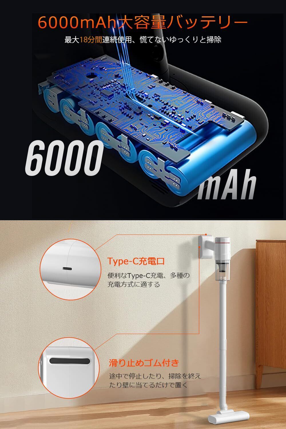 【長時間使用可能なバッテリーと静音設計】6000mAhの大容量バッテリーを搭載しており、最大35分間の連続使用が可能です。充電時間を気にせずに、一度の充電で家全体をしっかりと掃除できます。さらに、低騒音設計により、早朝や深夜の掃除でも周囲に迷惑をかけることがありません。静かでパワフルなこの掃除機は、家族や隣人を気にせず快適に使用できます。日常の騒音ストレスを軽減し、静かな環境での使用が求められる方にも最適です。多重フィルターが微細なホコリやアレルゲンをしっかりキャッチし、清潔な空気を排出します。