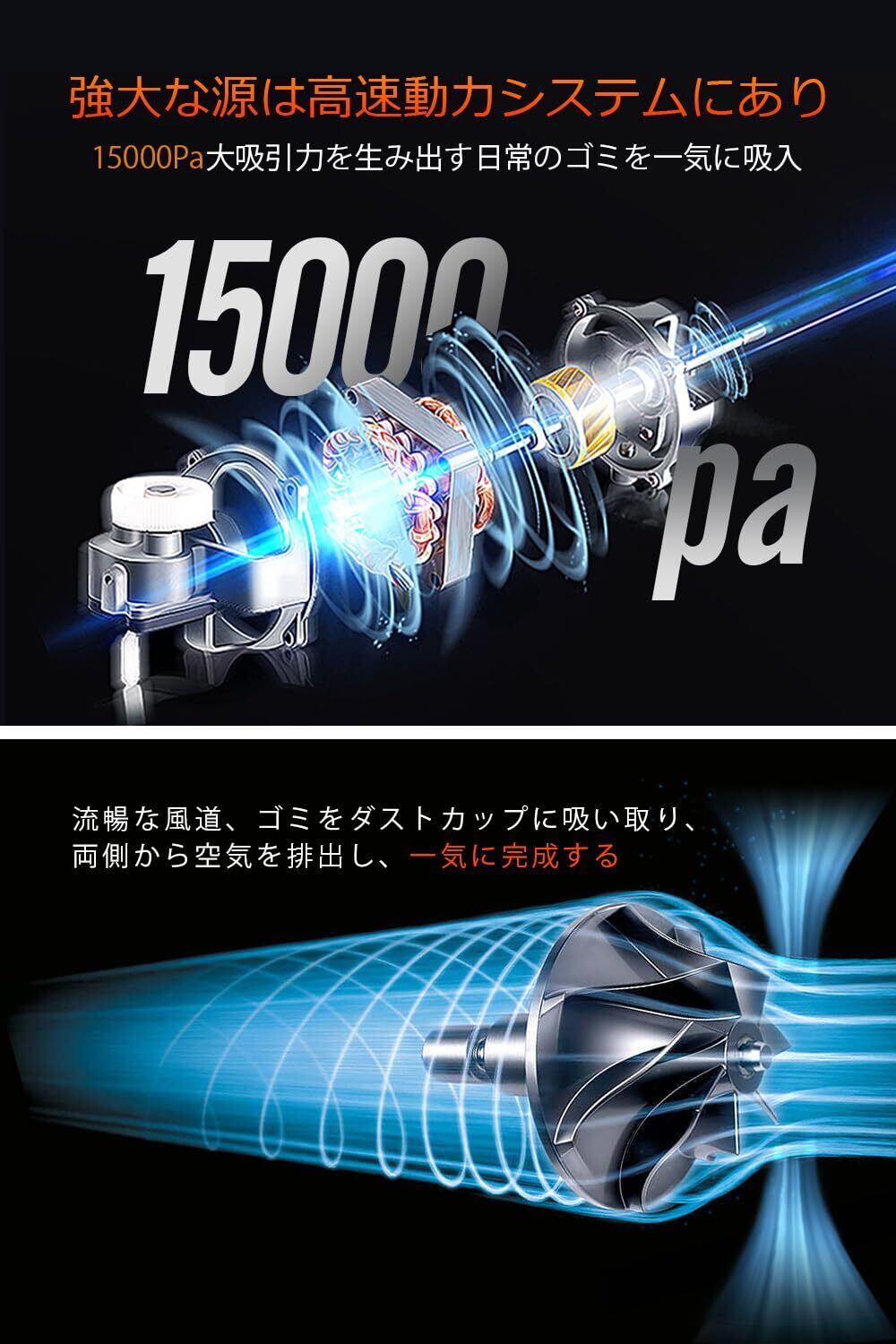 【圧倒的な吸引力と多機能性を兼ね備えたコードレス掃除機】このコードレス掃除機は、15000Paの超強力吸引力であらゆる汚れを徹底的に取り除きます。微細なホコリから大きなゴミまで対応し、カーペットやフローリングのどちらでも効果的に清掃できます。さらに、多重フィルターシステムが微粒子をしっかりキャッチし、HEPAフィルターがアレルゲンや細菌を取り除きます。HEPAフィルターは水洗い可能で、いつでも清潔な状態を保てます。また、一鍵での簡単操作が可能で、初めての方でも安心して使用できます。LEDライトが暗い場所の汚れを照らし出し、どこでも隅々まで清掃可能です。