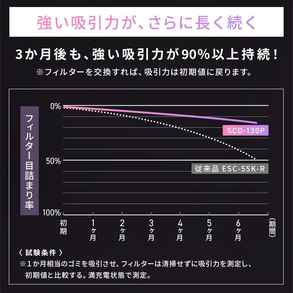 5気筒の2段遠心分離で強い吸引力が99%持続します!