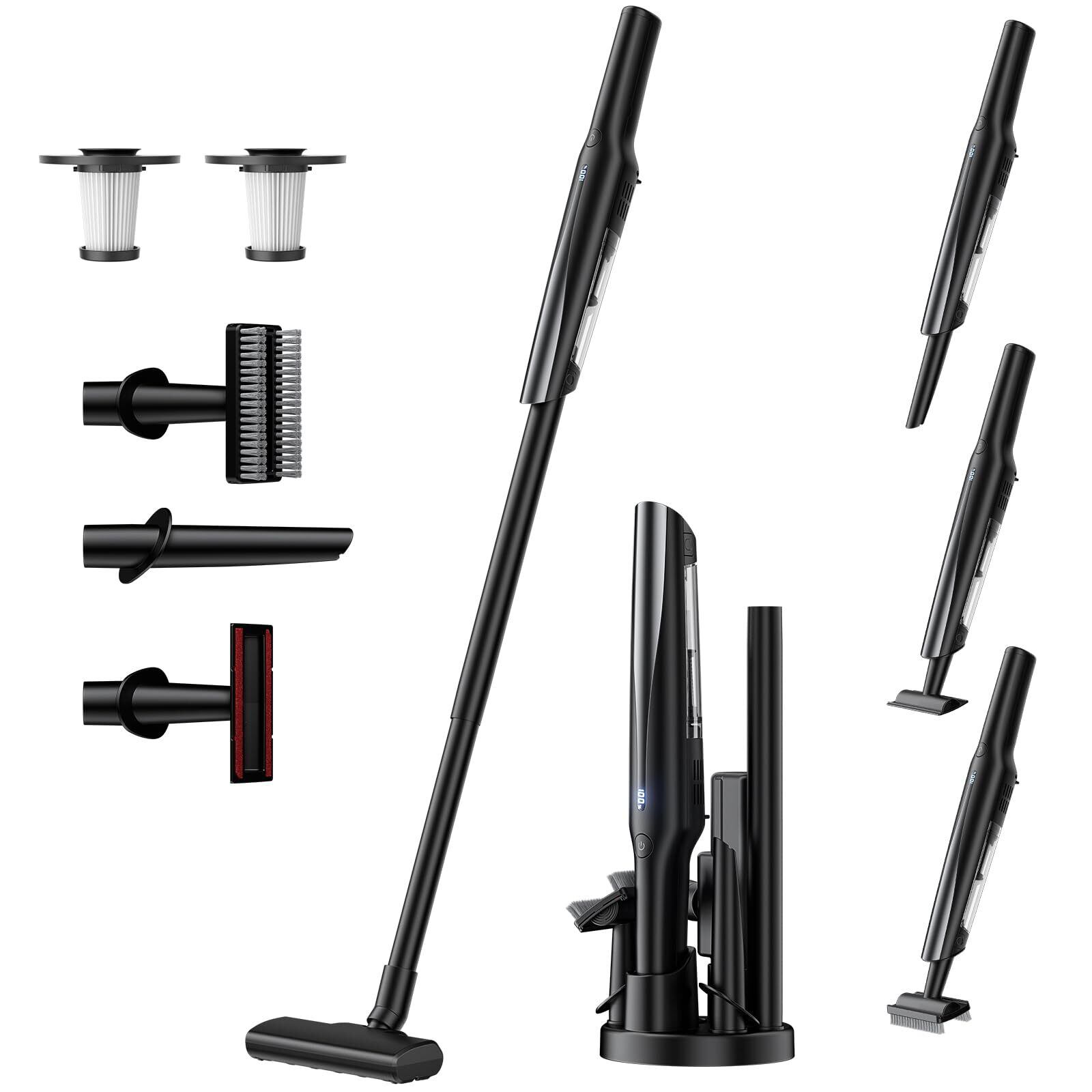 【6in1多用途ノズル × 省スペース収納スタンド付き】付属の多用途ノズルを組み合わせることで、床・ソファ・布団・車内・棚の上・隙間などあらゆる場所を1台で対応できます。収納スタンドは充電ステーションとしても使える2in1タイプで、壁に穴を開ける必要がなく、ワンルームや日本の省スペース住宅でもスッキリ収納できます。1台で家中のクリーニングが完結します。