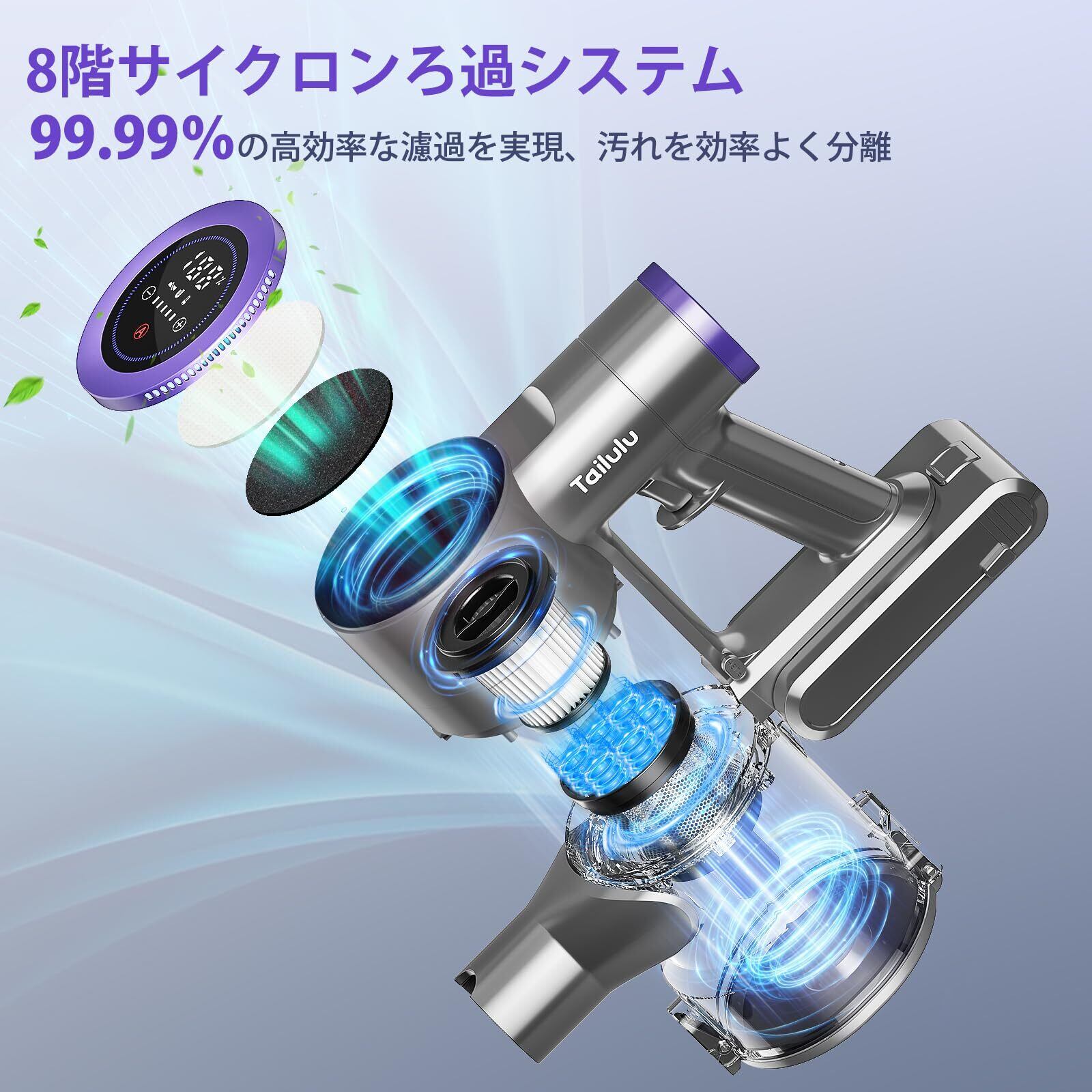 ✨【8重濾過システム・サイクロン式・ワンタッチゴミ捨て】Tailuluスティック掃除機8層強力濾過サイクロンシステムを採用して、遠心力で「ゴミ」と「空気」を確実に分離して集塵できます。効率的な吸引力を持続でき、長時間の連続使用でも安定した性能を発揮します。掃除機コードレスは高度なサイクロン除塵技術と高性能HEPAフィルターシステムと組み合わて、0.3μmの微細なホコリを99.97%除去し、二次空気汚染を排除し、いつでもどこでも家の中を清潔に保てます。HEPAフィルターを洗浄し、乾燥させて再利用することで、エコを実現します。1.5Lの大容量ダストカップで、ゴミ捨て回数や手間もを軽減。ワンタッチで簡単に空にでき、お手入れ簡単、手を汚しません。【予備用フィルターの製品番号:B0CYLRR1YT】