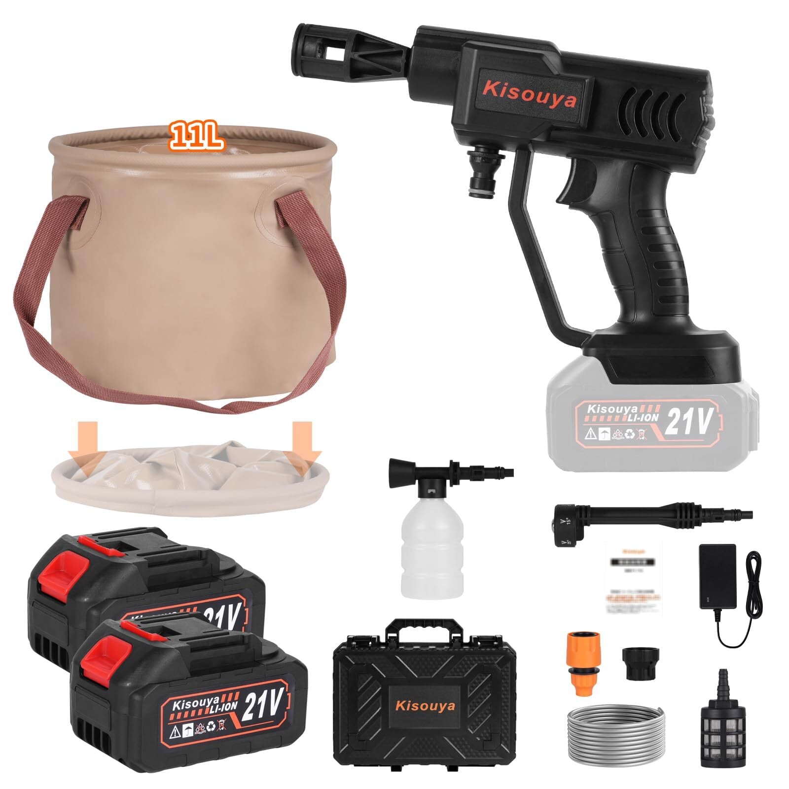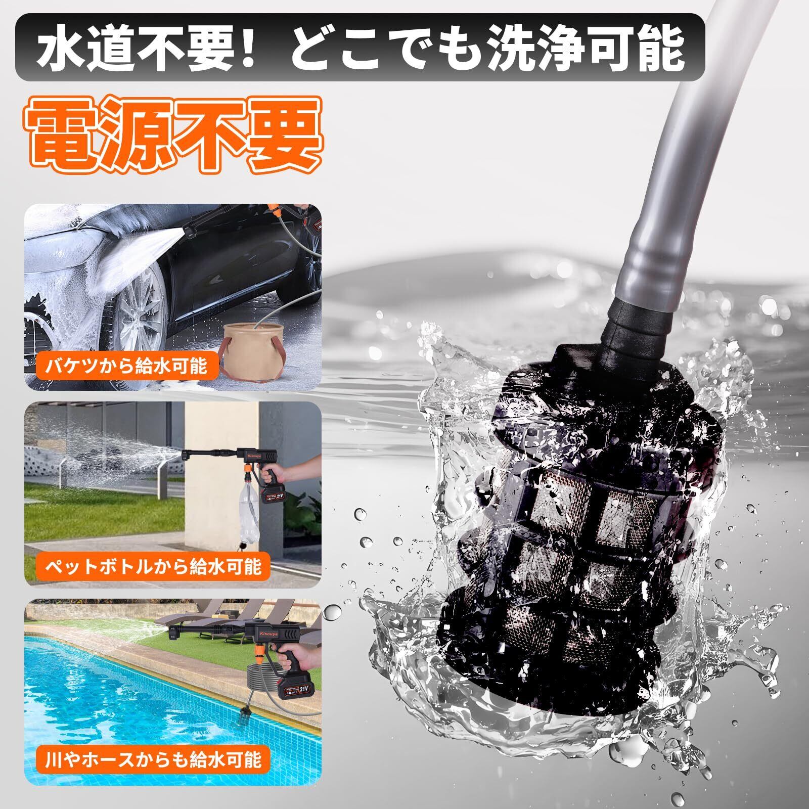 高圧洗浄機 コードレス 充電式 9MPaハンディタイプ高圧洗浄機 バッテリー2個付き(18650-5S2P・3.0Ah・55.5Wh・21V(Max))折りたたみ式バケツ付き|家庭用 超軽量 女性や高齢者も片手で使える 9MPa強力高圧洗浄&6種類ノズル搭載|車・庭・階段・バルコニー・浴室・エアコン・墓石など多用途、大掃除にも最適