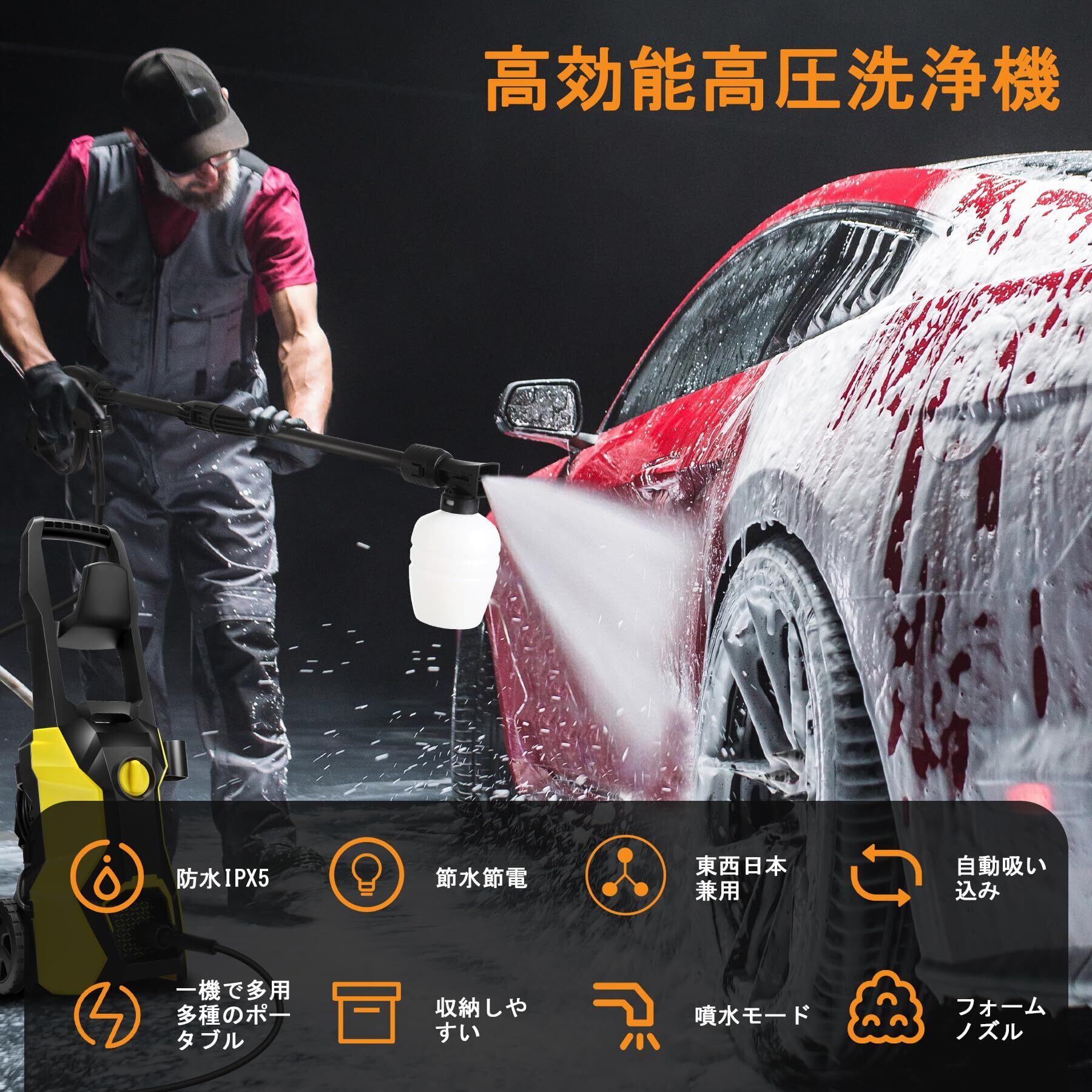 【 強力高圧&東西日本兼用️】 COOCHEER 2025最新モデルの高圧 洗浄 機は、最大吐出量7L / Min、最大吐出圧力:14MPaが実現されています。周波数は50/60Hzとも対応でき、東西日本適用!高圧で噴射する水の力で窓や車についた頑固な汚れを落としてくれる高圧洗浄機です。耐久性抜群!