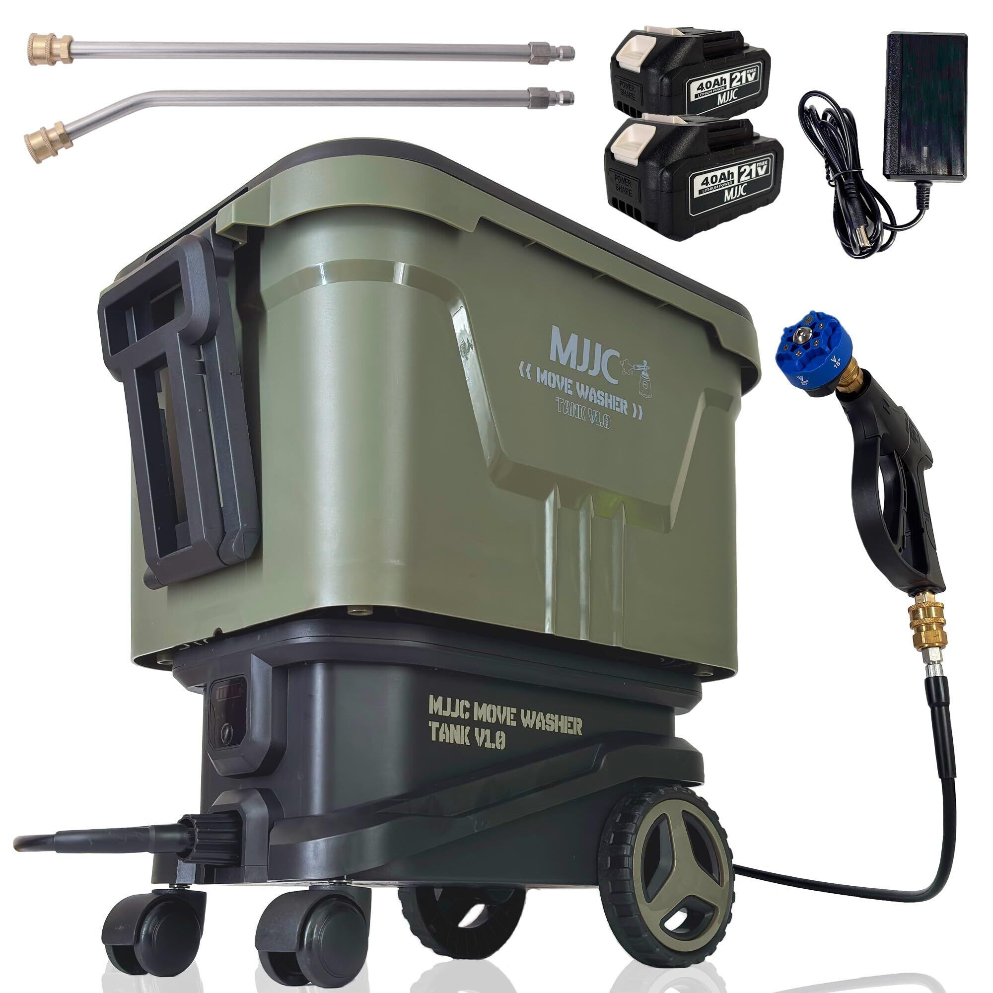 MJJC ムーブウォッシャー タンク(MOVE WASHER TANK)登場!【大容量28Lバケツ タンク式 コードレス高圧洗浄機】ホイール付きなので移動も楽々。水道ホースや電源コンセントがない場所でも洗車OK。