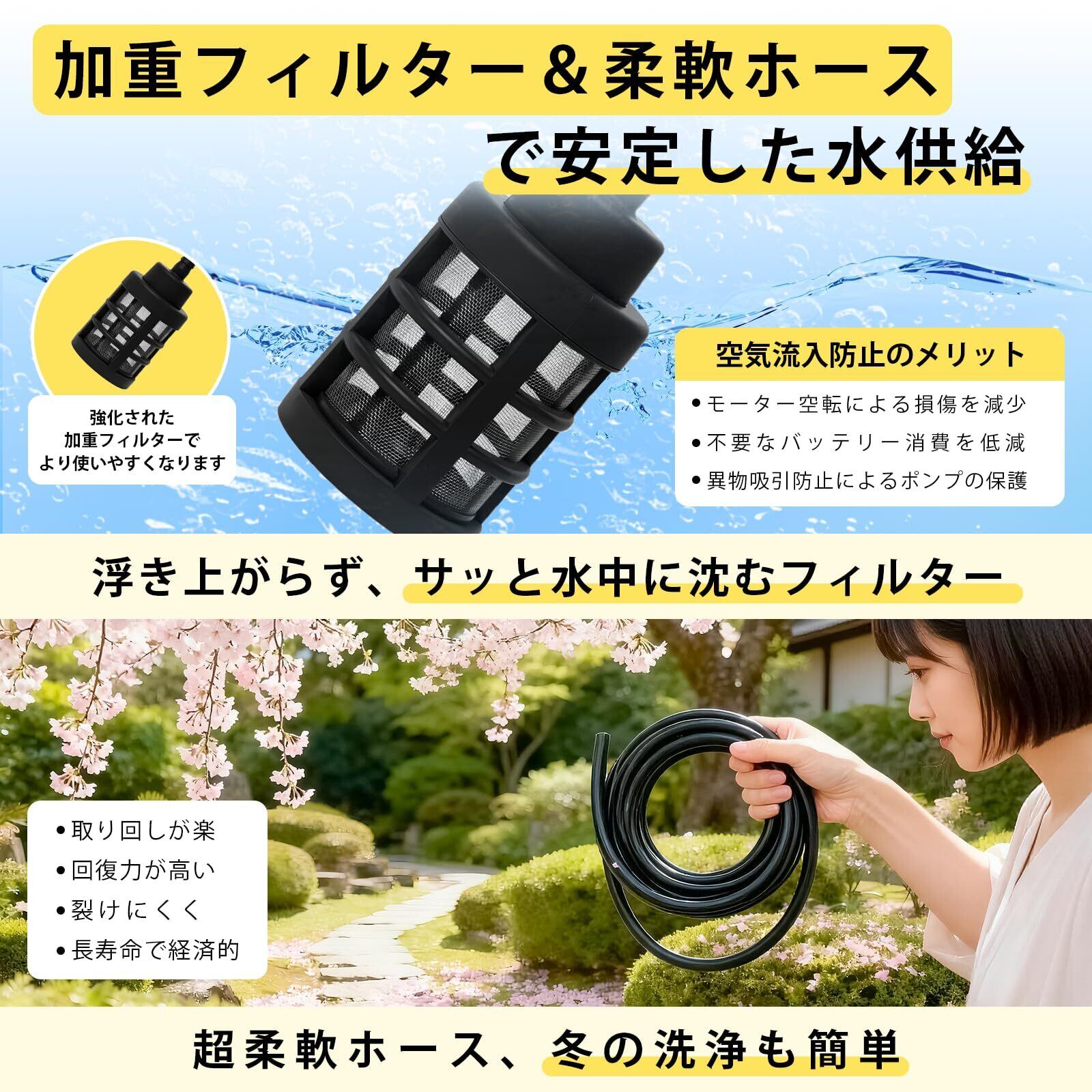 【加重型フィルターと5メートル長の超柔軟ホース】CNJITIME 高圧洗浄機 ハンディ、当社のエンジニアが長期間の市場調査を通じて、ユーザーの使用時の痛点に深く着目し開発しました。従来の吸水フィルターでは、水位が低くなると空気を吸い込み、モーターが空転を発生させることがありました。これは電力の無駄遣いであり、モーターへの負担でもあります。私たちの製品は、加重フィルターを特別に開発し、重みのある設計で常に水中深くに位置し、空気の混入を物理的にブロックします。これにより、モーターを保護し、同時に省電力と安定した吸引力を確保できます。また、専用の5メートル長の四季通用柔軟ホースは、バケツに溜めた水、小川、雨水タンク、さらにはシャワーのお湯まで、どれも水源として使用できます。5メートルの超柔軟ホースは、冬でも柔らかさを保ちます!お湯(最大50℃まで対応)を使用すれば、凍ったフロントガラスの雪も簡単に溶けます。ホースとフィルターを組み合わせることで、泥や不純物を深くろ過し、ポンプの詰まりを効果的に防止し、製品の寿命を大幅に延ばすことができます。