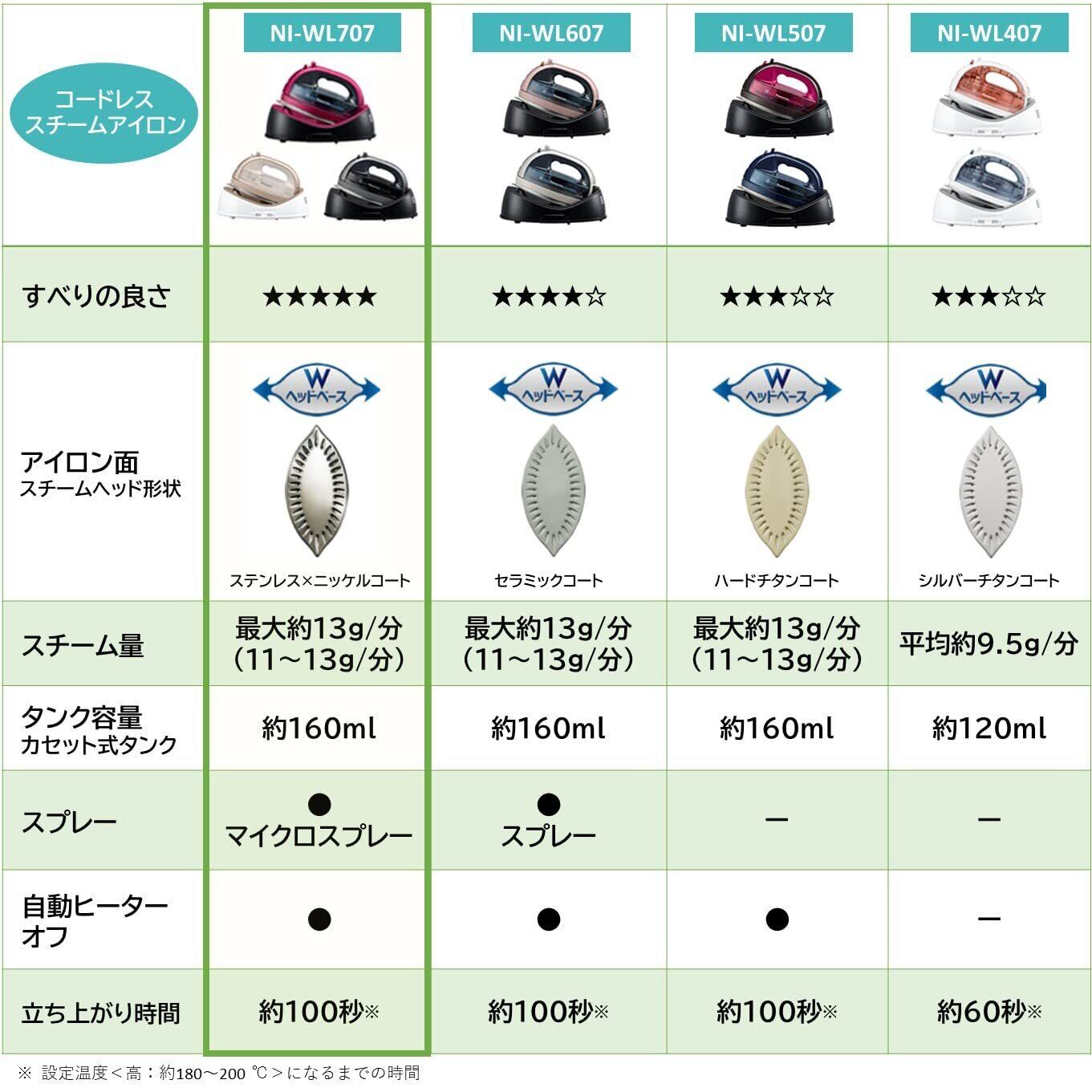 パナソニック コードレススチームWヘッドアイロン ピンク NI-WL707-P