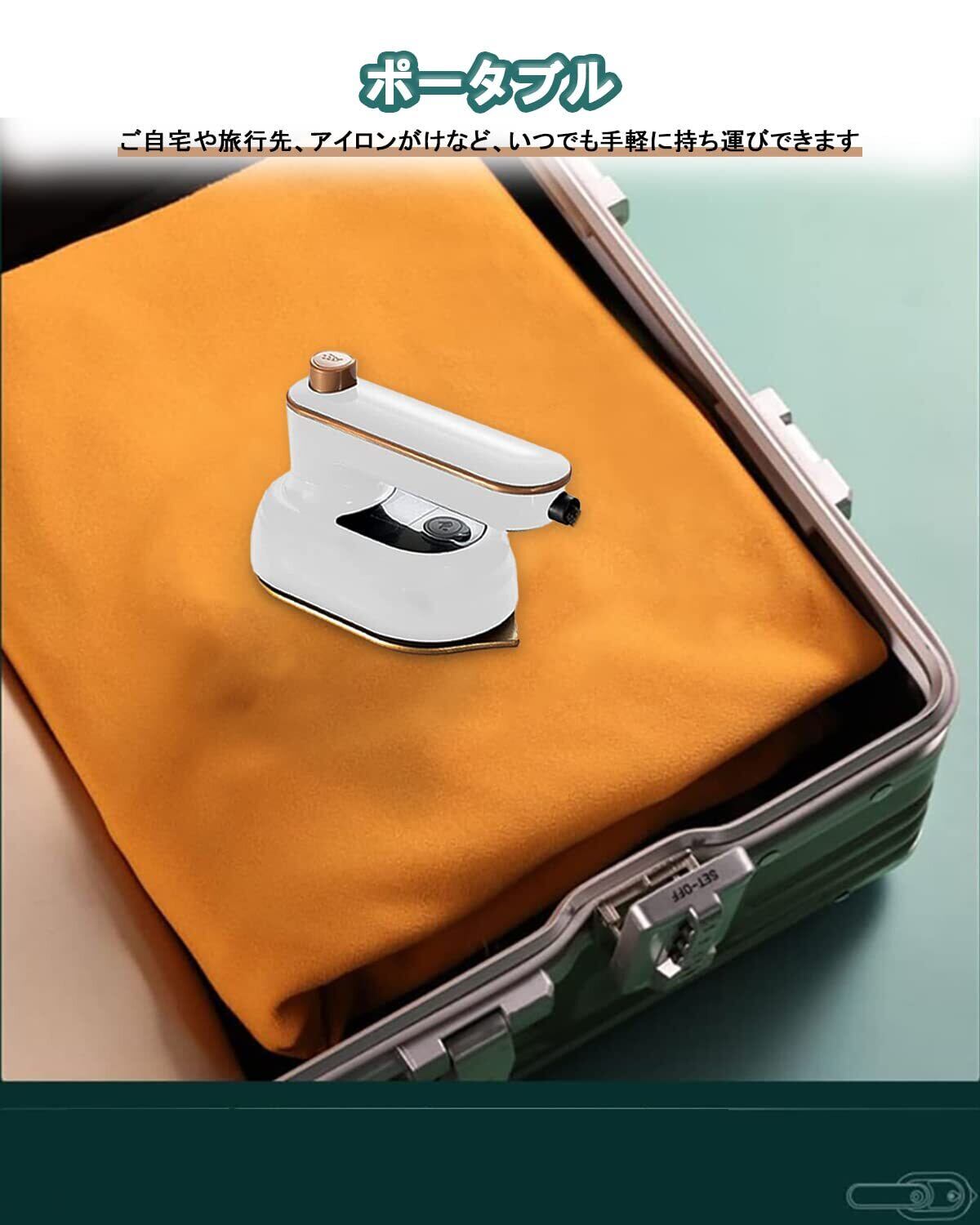 【30秒予熱&時間節約】立ち上がり最短30秒!すぐに熱くなるので、使いたい時にすぐ使えると喜んでいました。時短に繋がっていて家事の効率化にとても役立ってます! 【コンパクト・折り畳み式・携帯便利】ミニアイロンンの本体サイズは約幅6.2×長さ11×高さ8..4cmで電線は1.5mです。この手のひら小型アイロンは約300グラムで、あいろんの体積が小さくて、長い時間使用して手首も疲れないで、カバンに入れても邪魔しないです。携帯便利です。出張や旅行の際は、ハンガースチーマーをスーツケースに入れることができます。必要なときには、いつでも衣ミニアイロンきます。