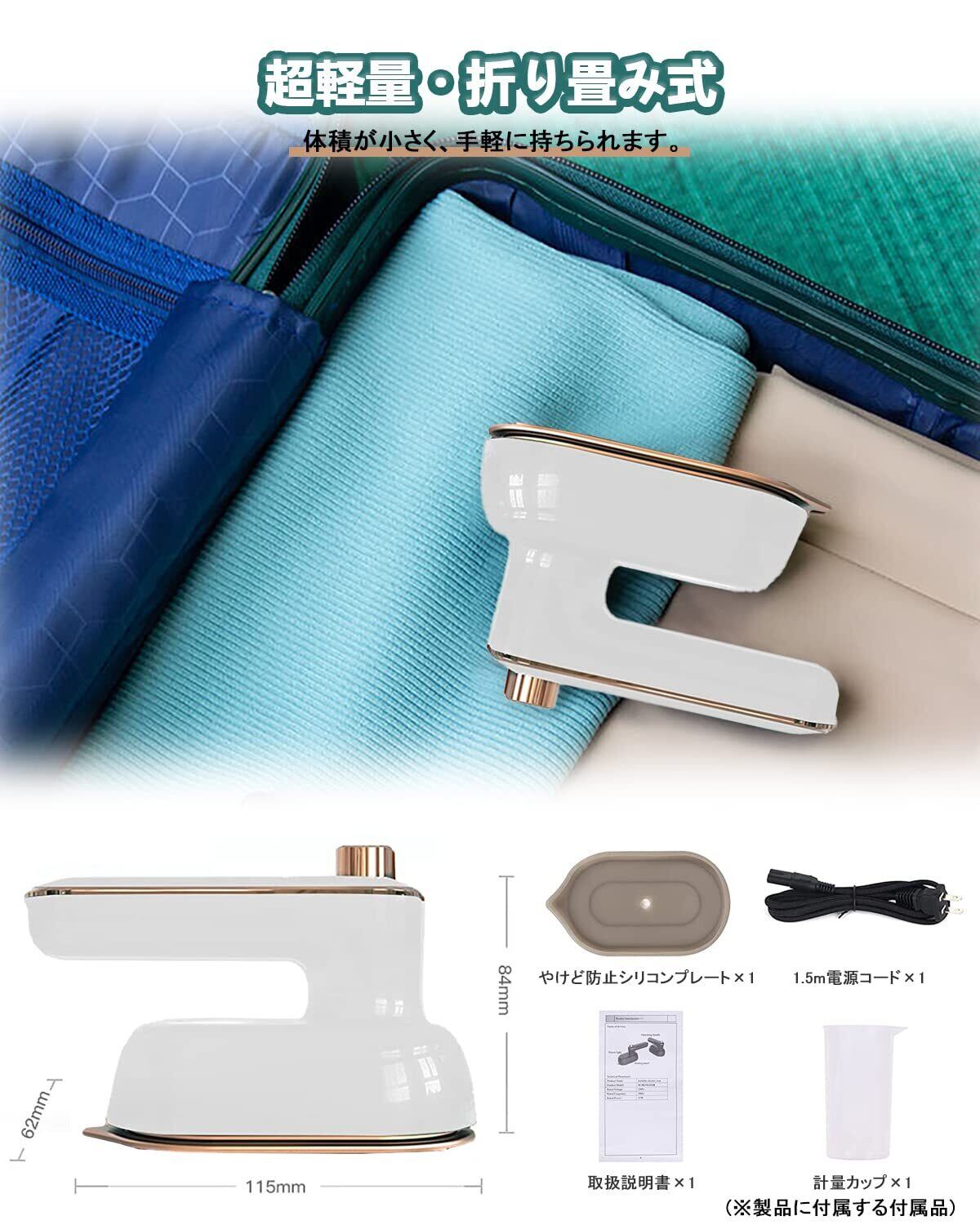 【コンパクト・折り畳み式・携帯便利】ミニアイロンンの本体サイズは約幅6.2×長さ11×高さ8..4cmで電線は1.5mです。この手のひら小型アイロンは約300グラムで、あいろんの体積が小さくて、長い時間使用して手首も疲れないで、カバンに入れても邪魔しないです。携帯便利です。出張や旅行の際は、ハンガースチーマーをスーツケースに入れることができます。必要なときには、いつでも衣ミニアイロンきます。