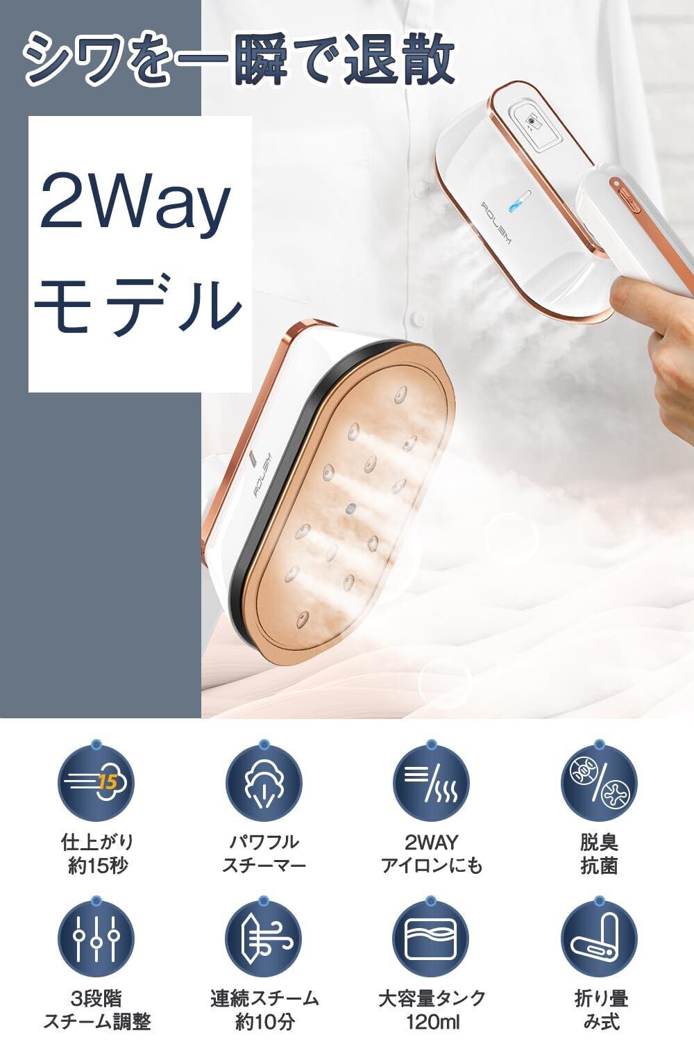 ①【かけたまま瞬間シワ伸ばし・忙しい朝の時短ケア】 高温パワフル噴射で、ハンガーに掛けたままサッと使える スチームアイロン 。面倒なアイロン台不要で、シャツ・ワンピース・スーツも アイロン かけたまま 簡単にシワ取り可能。毎日の衣類ケアを快適にする実用性抜群の 衣類スチーマー です。
