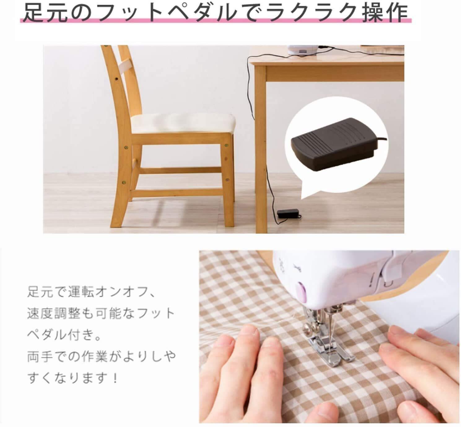 【フットペダルスイッチ】ハンドスイッチだけてなく、フットペダルスイッチも附属しており、足の踏み加減でお好みの縫い速度に調節できます、両手が自由に使えるから作業効率がアップします。