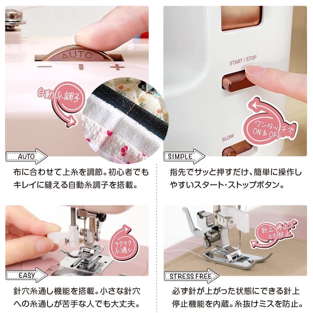 自動糸調子・ゆっくりスタート・針上停止など気分が上がる、うれしい機能が充実。