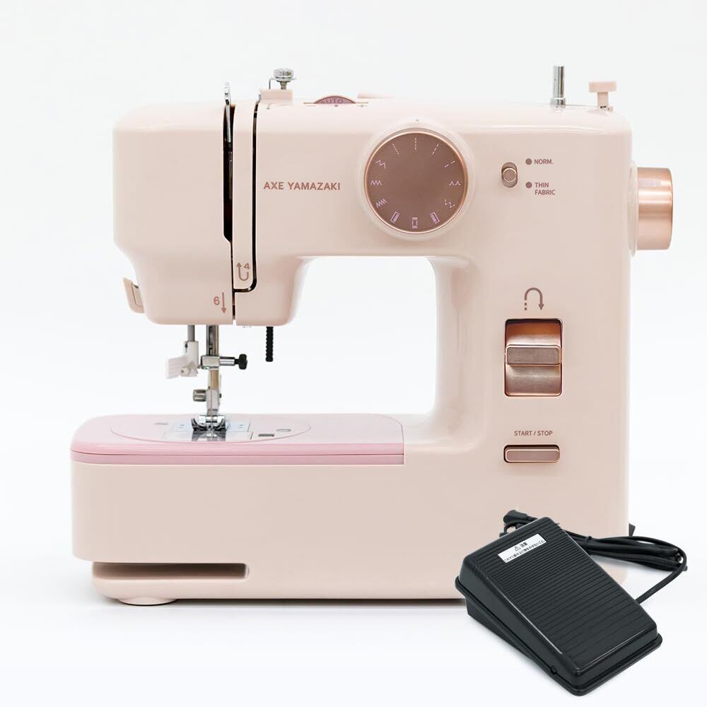 アックスヤマザキ KA-01 ミシン 電子ミシン コンパクト 小型 初心者 シンプル かんたん 簡単 本体 人気 水平釜 薄物 厚物 厚手 厚物縫い 北欧風 (フットコントローラー+準備セット付)