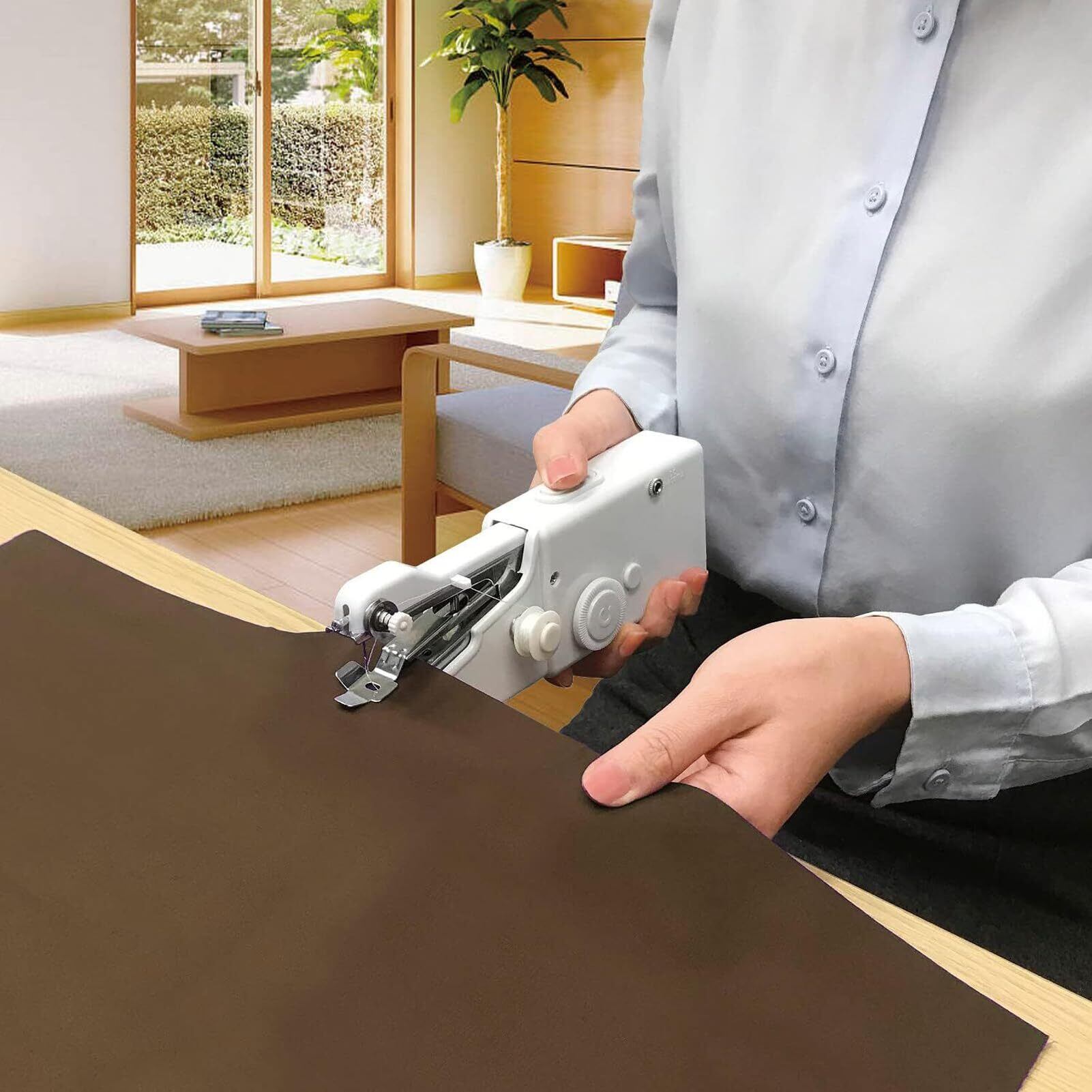 ●片手で使える軽量コンパクトな電動式ハンディミシン。布送りも自動だから作業も楽々。服を着たまま、またハンガーに掛けたままでもズボンやスカートの裾上げやほつれ直しなどの補修などできる