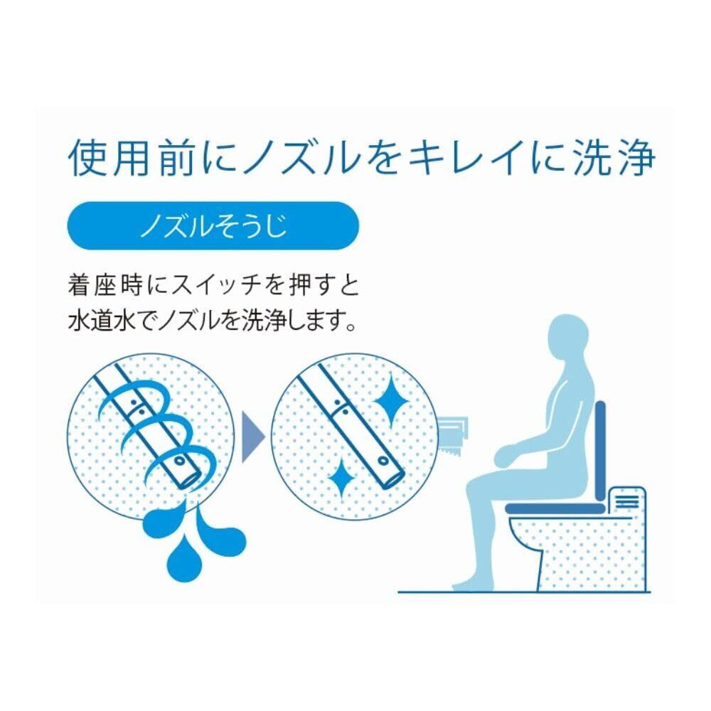 着座時にスイッチを押すとノズルをたっぷりのお湯で強制洗浄します。