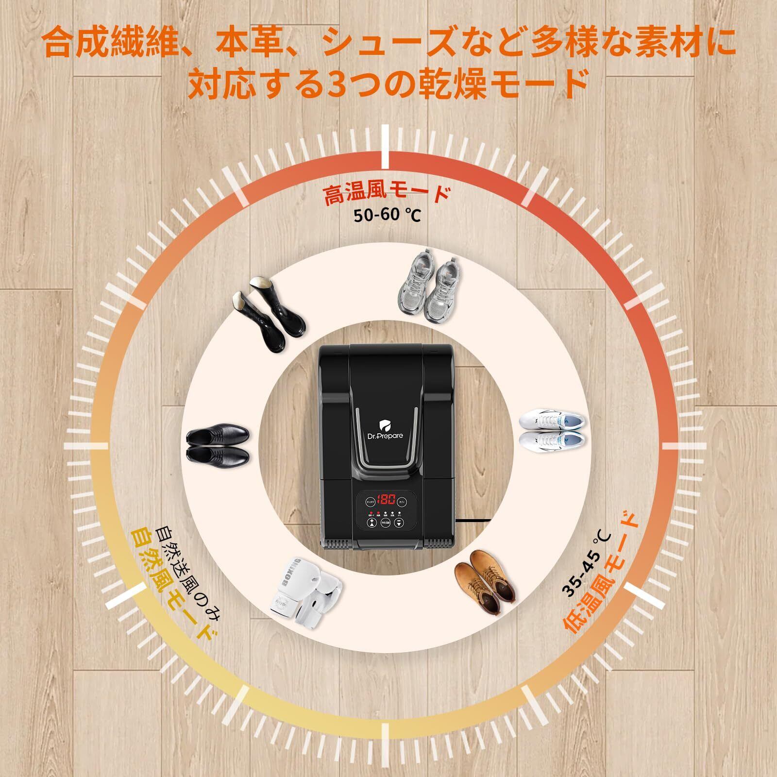【2025年進化版 - 3つの乾燥モードであらゆる素材に対応】 高温・低温・自然風の3つの乾燥モードを選択可能。デリケートな革製品やゴム製の雨靴にも優しく対応!Dr.Prepare靴乾燥機で、靴をいつも清潔&快適に保ちましょう!