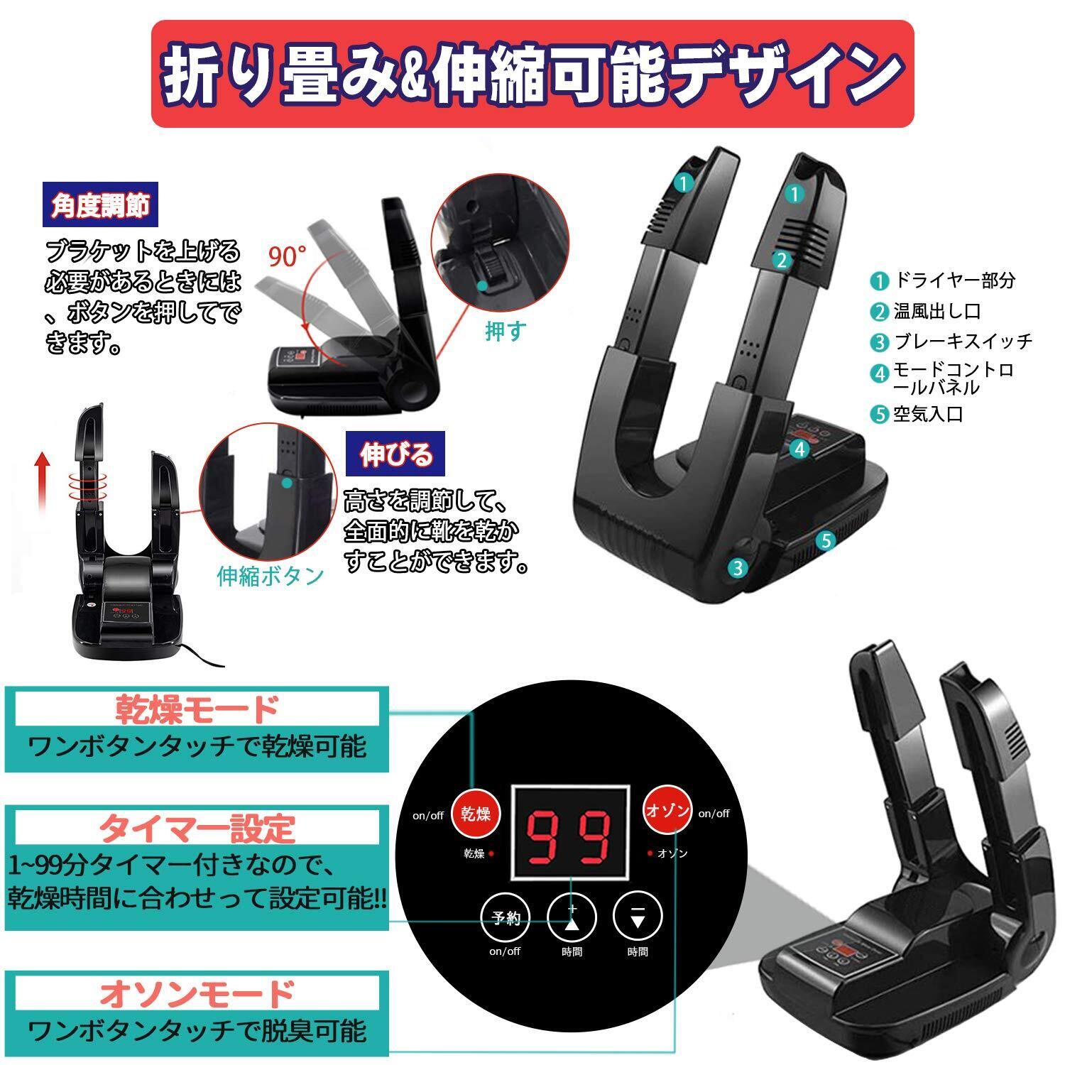 くつ乾燥機 靴乾燥機 シューズ乾燥機 智能予約機能 折り畳み式 梅雨対策 3段階伸縮調整 スニーカー/革靴/長靴などに対応 PSE認証済み 日本語取扱説明書付