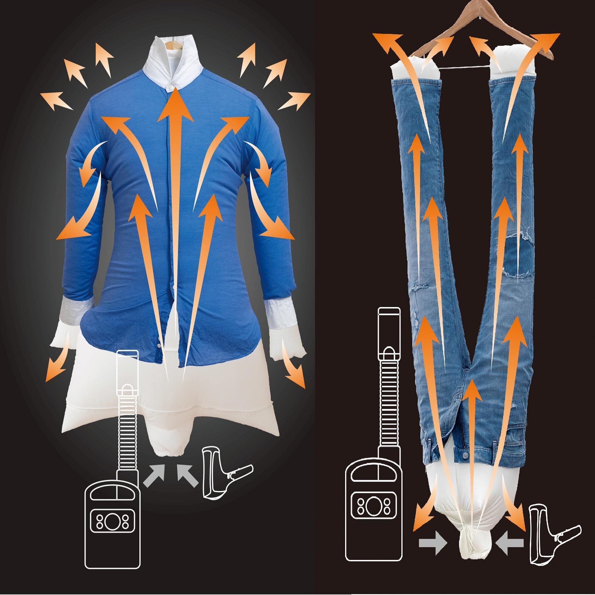 忽乾(コツカン)エアロダクトTHEロング 携帯用衣類乾燥バルーン 上下セット 旅先洗濯 部屋干し 急速乾燥 衣類軽減 荷物軽減 シワ取り ニオイ対策 ドライヤー ふとん乾燥機対応 マービン貿易