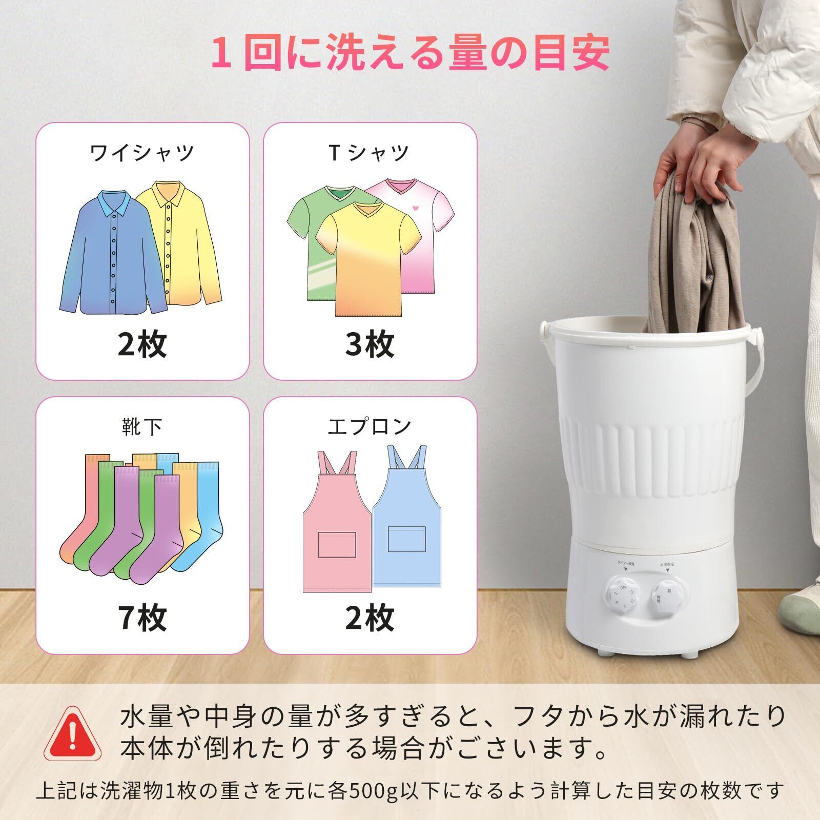 優れた洗浄力:小さいサイズでも洗浄力は妥協なし。最大600gまで対応可能で、日常の洗濯ニーズにぴったり。効率的な洗浄技術で、頑固な汚れも取り除き、衣類が新品のようにきれいに仕上がります。
