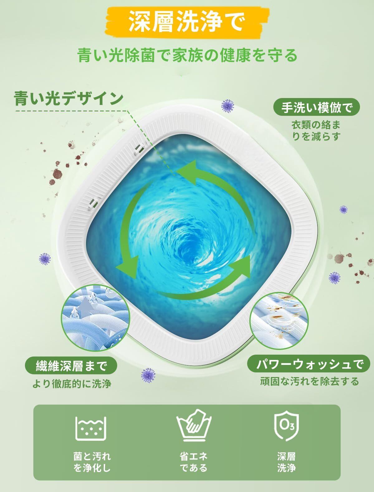 【強力洗浄とブルーライト除菌、健康と清潔を守ります】 小型洗濯機 ミニ洗濯機 一人暮らし 洗衣机 ウォッシュボーイ バケツ洗濯機 靴 washing machine 脱水機能付き ポータブル洗濯機 全自動洗濯機 簡易洗濯機 上履きあらい洗濯機 上履き洗い 折りたたみ洗濯機 このポータブル洗濯機は36Wの強力アップグレードモーターを備えており、最高回転数は350RPMで、高速かつ安定した運転が可能です。360°全方位の手洗いシミュレーションが実現でき、強力な洗濯機能により衣類の繊維内部まで深く洗浄し、頑固な汚れを効果的に取り除き、深層洗浄の効果が顕著です。同時に、ブルーライト除菌の設計により、細菌や汚れを浄化し、衣類に深層洗浄をもたらすだけでなく、家族の健康を全方位的に守り、あなたの衣類を清潔で安心な状態に保ちます。