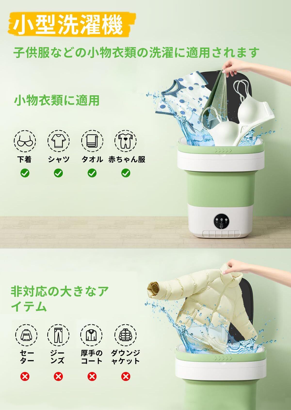 【コンパクトで持ち運び便利、小物衣類の洗濯に最適】 この洗濯機は下向き折りたたみ式の設計なので、収納スペースをとりません。全体的にコンパクトで持ち運びやすく、日常の家庭での使用や旅行時にも非常に便利で、旅行の満足度を大幅に向上させます。子供服、下着、シャツ、タオル、赤ちゃん服などの小物衣類の洗濯に適しており、小物衣類の洗濯をより専門的かつ便利にし、時間と労力を節約します。