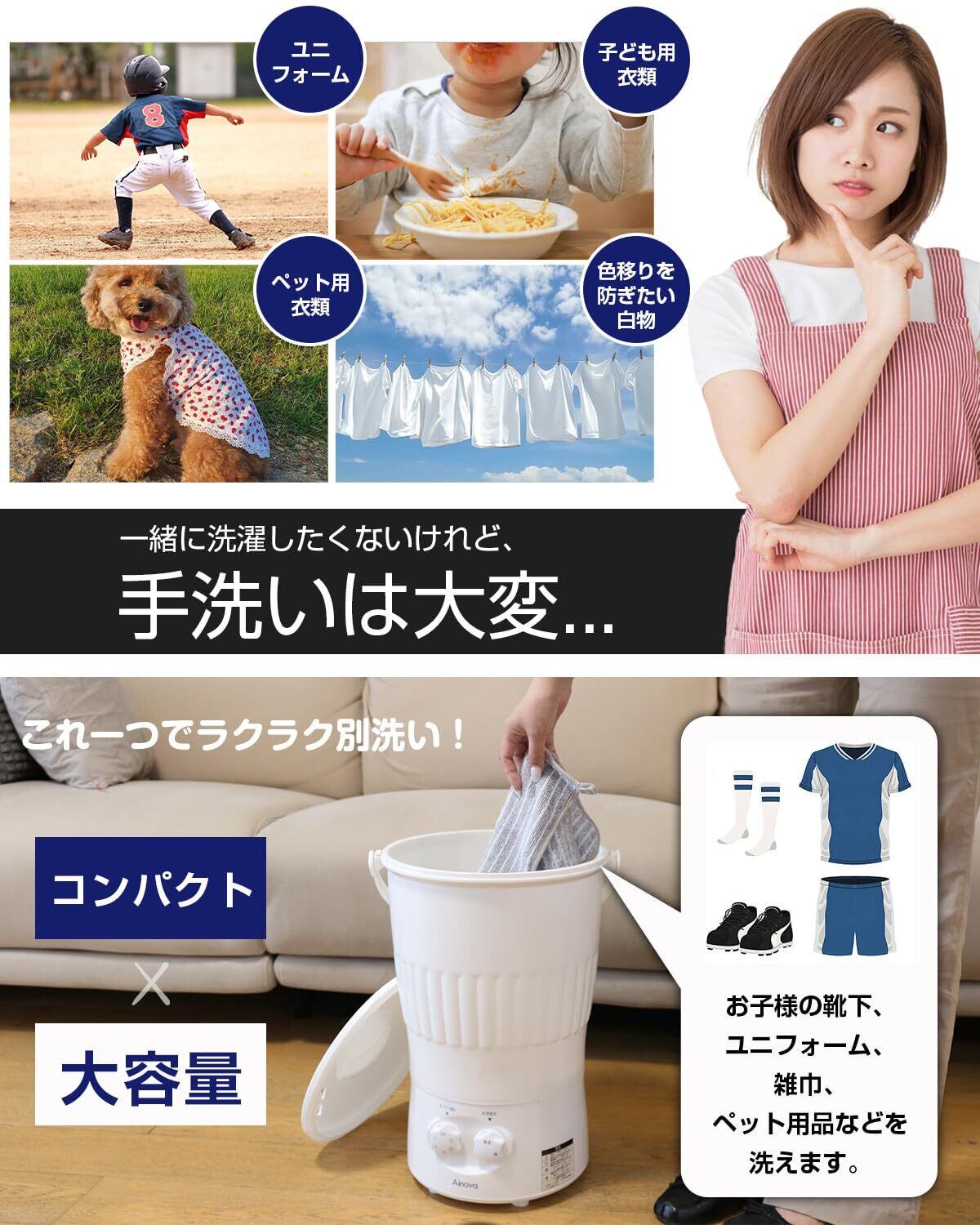 【多用途&分け洗いとして活躍】汚れたスニーカーや運動着、頑固なシミの予洗いやつけ置き洗い、下着やベビー服、介護用品の分け洗いなど様々な用途で活躍します。ペット用品の洗濯にもおすすめ。他の衣類へのニオイうつりの心配もありません。キッチン雑巾や靴、泥のついたじゃがいも・にんじんなども、強力な水流と撹拌力でしっかりと汚れを落とし、ご家庭の衛生を保ちます。