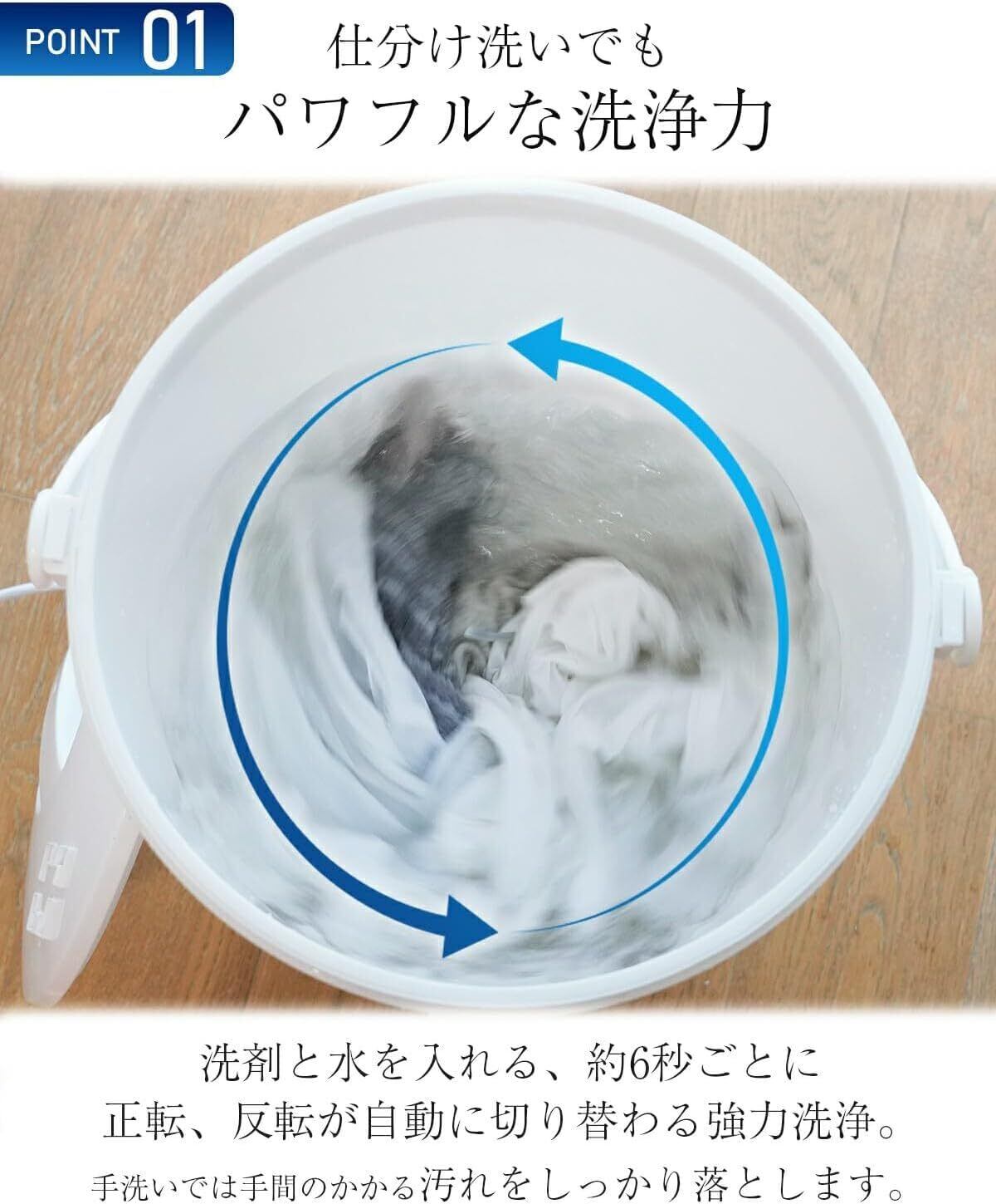 【パワフル洗浄モード搭載】バケツ式洗濯機には、約6秒ごとに水流の回転方向が自動で切り替わる独自の洗浄機構を搭載。この左右反転式の水流により、洗濯物が一方向に偏ることなく、全体をムラなく洗い上げることができます。強力な撹拌力で、汗や皮脂汚れ、泥汚れ、食べこぼしなどの頑固な汚れもすっきり除去。手洗いでは手間のかかる作業も、スイッチひとつで簡単に済ませられます。「標準」・「ソフト」洗い方を選べるから、衣類へのダメージを最小限に抑えながら、確かな洗浄力を実現。少量でもしっかり洗いたい方にぴったりの洗濯機です。