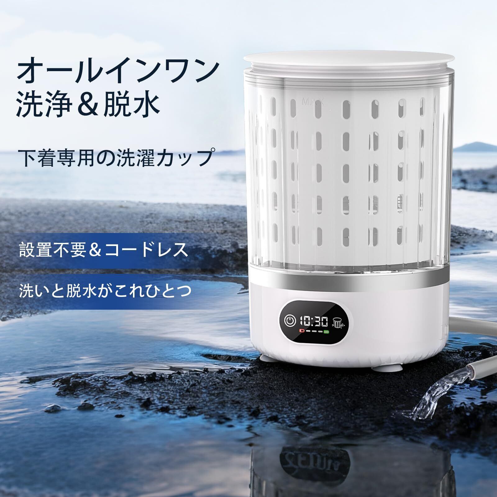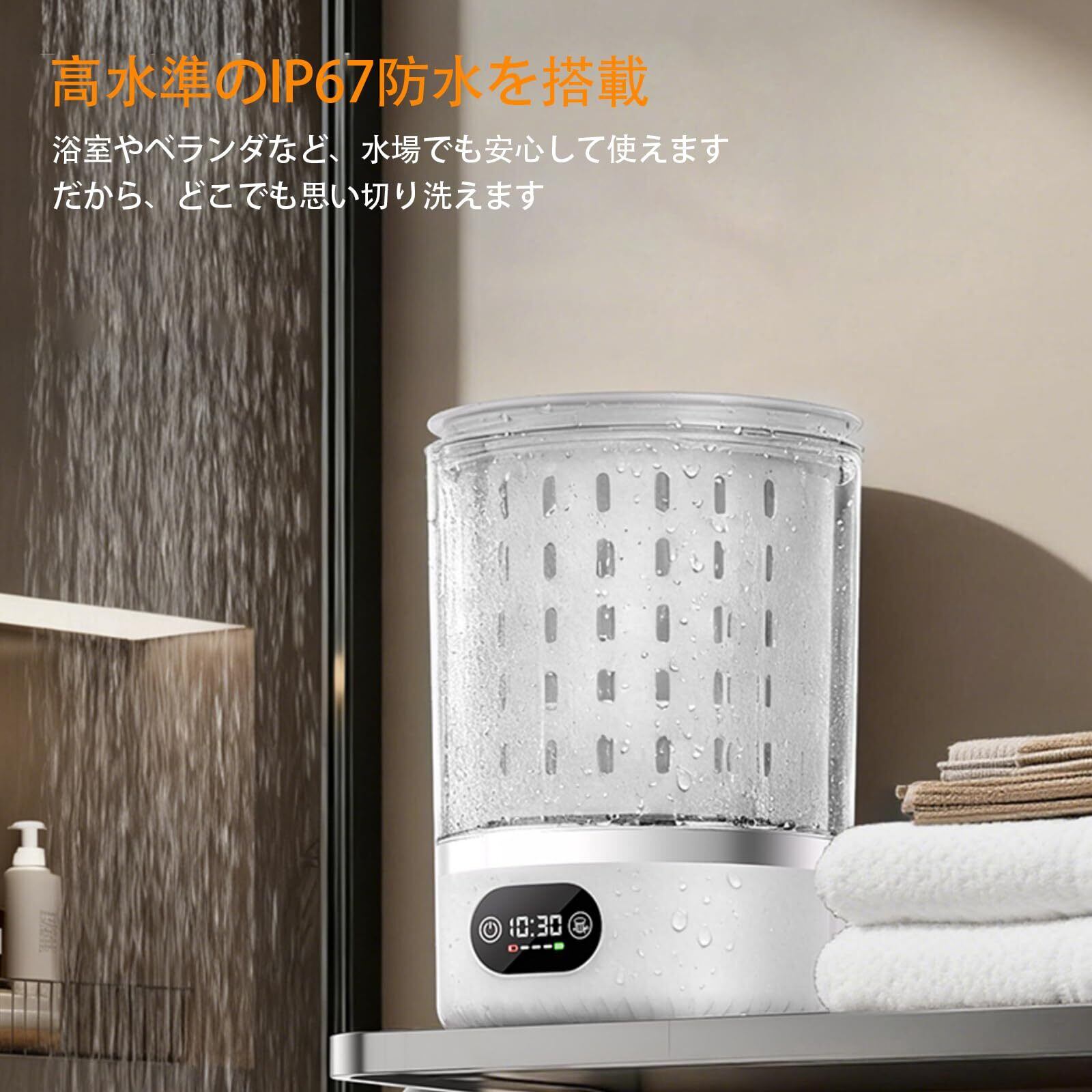 ワンタッチ操作&長時間バッテリ駆動-面倒な設定はもう不要。このミニポータブル洗濯機は、LEDタッチパネル、3つのスマートモード(5分/15分洗濯+3分脱水)と自動リセット機能を備えています。旅行にも便利なこの洗濯機は、4000mAhの大容量バッテリーを搭載し、1回の充電で最大18回洗濯可能。さらに、2時間の急速充電にも対応しています。