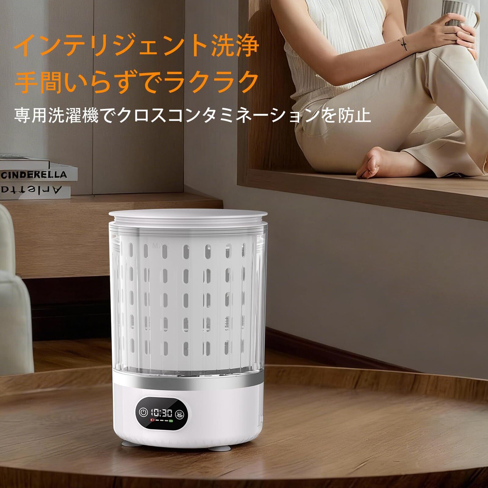 深層クリーニング+安全素材-このベビー用洗濯機は、ブルーライト技術と深層クリーニングプログラムを採用し、みずみずしい肌をやさしくケアしている。敏感肌と赤ちゃんの衣類のために設計され、TPE食品級の材質を採用しており、安全で安心である。信頼性の高い下着洗濯機として、下着の清潔さを確保するだけでなく、衛生的で安心なケア体験を提供します。