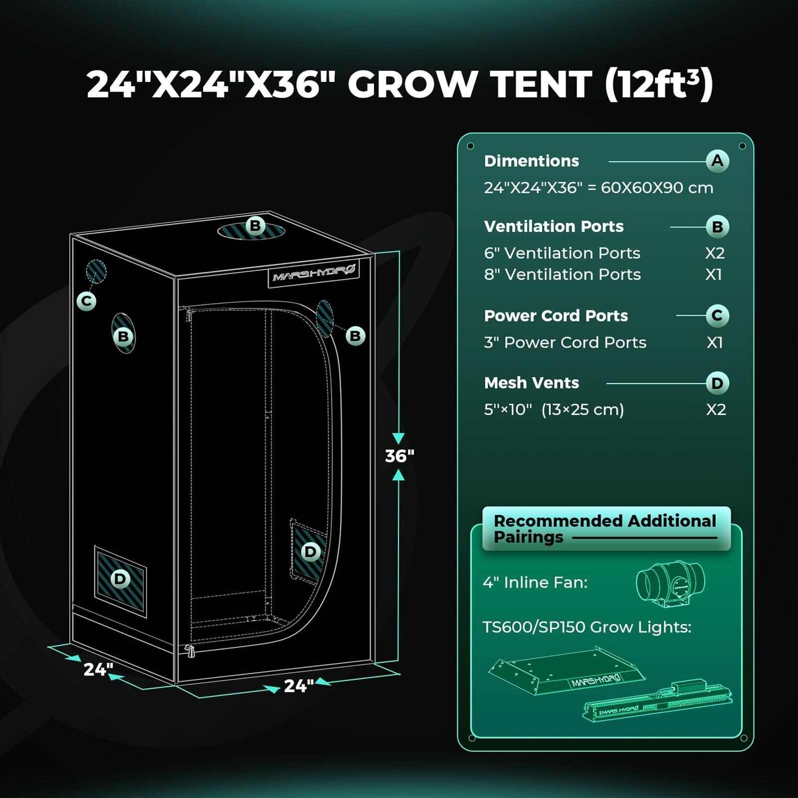 MARS HYDRO 2x2x3 アドバンスト グロウテント、60x60x90cm 高反射マイラー1680D 水耕栽培用室内植物栽培用、フロアトレイとスムーズジッパー付き TS600用
