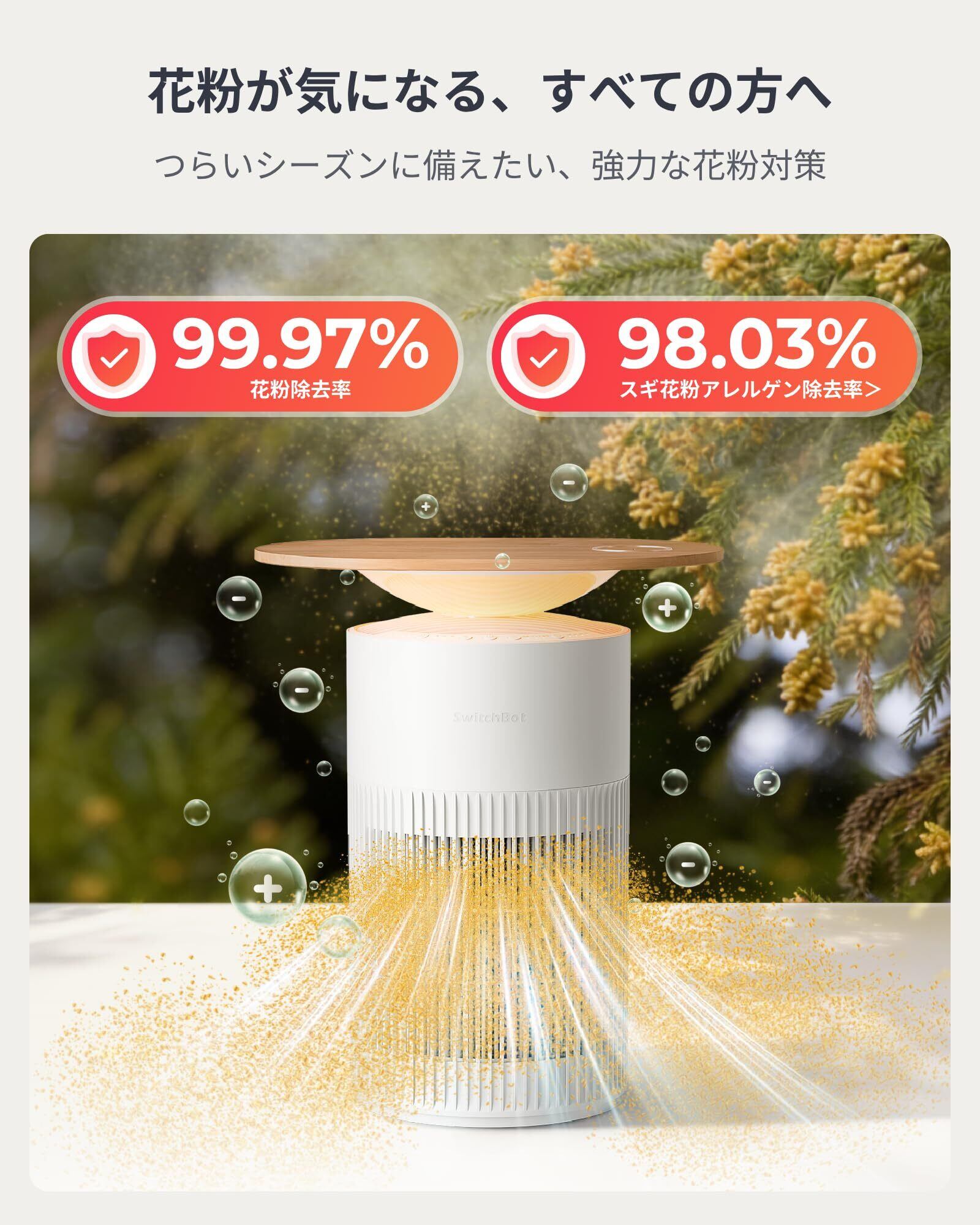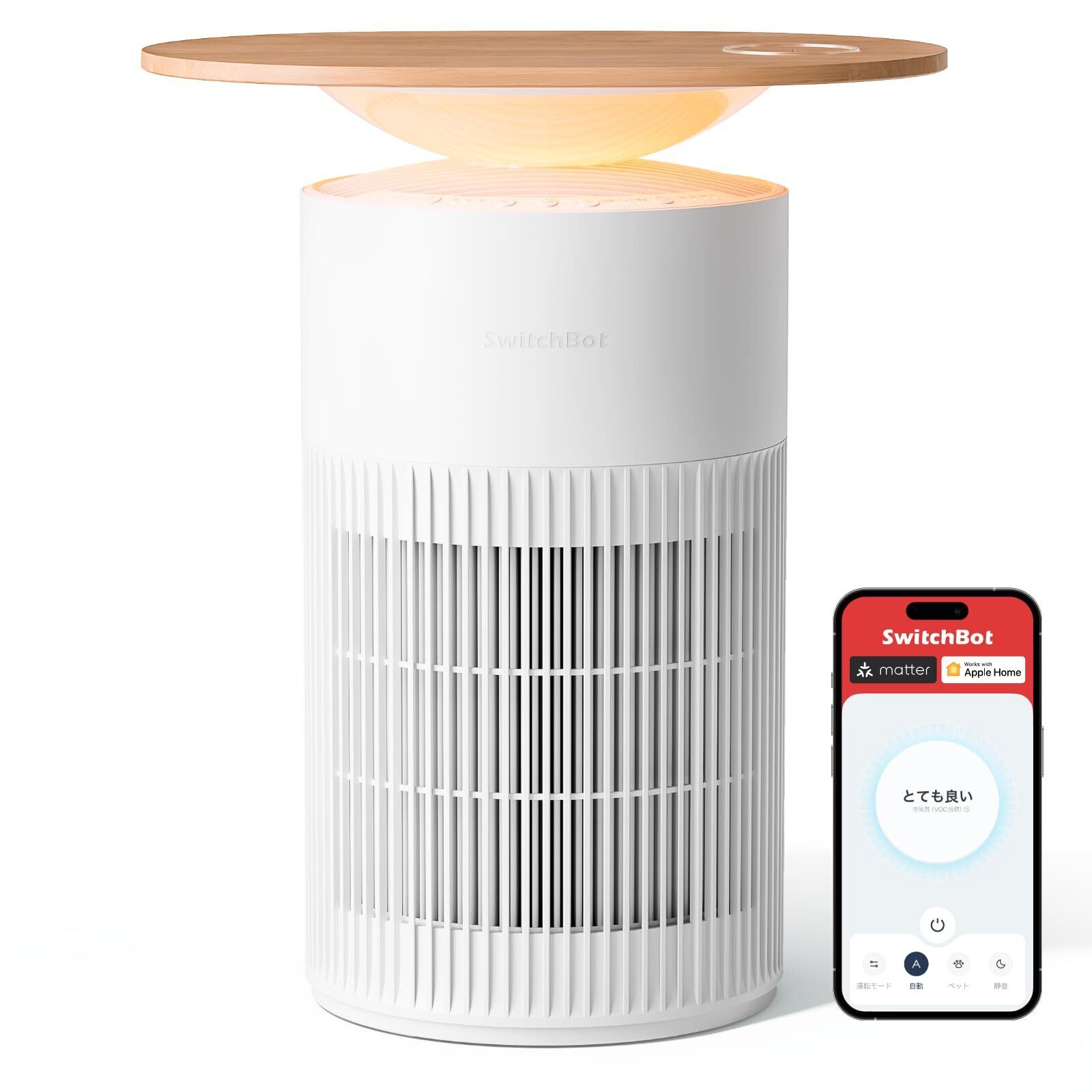 SwitchBot 空気清浄機 Table 脱臭 ワイヤレス充電 - スイッチボット 25畳 静音 小型 省エネ 大風量 360度全方位 浄化 消臭 除菌 集じん HEPA フィルター 花粉症 ニオイ対策 タイマー機能 ムードライト付き Alexa Google Home Siriに対応