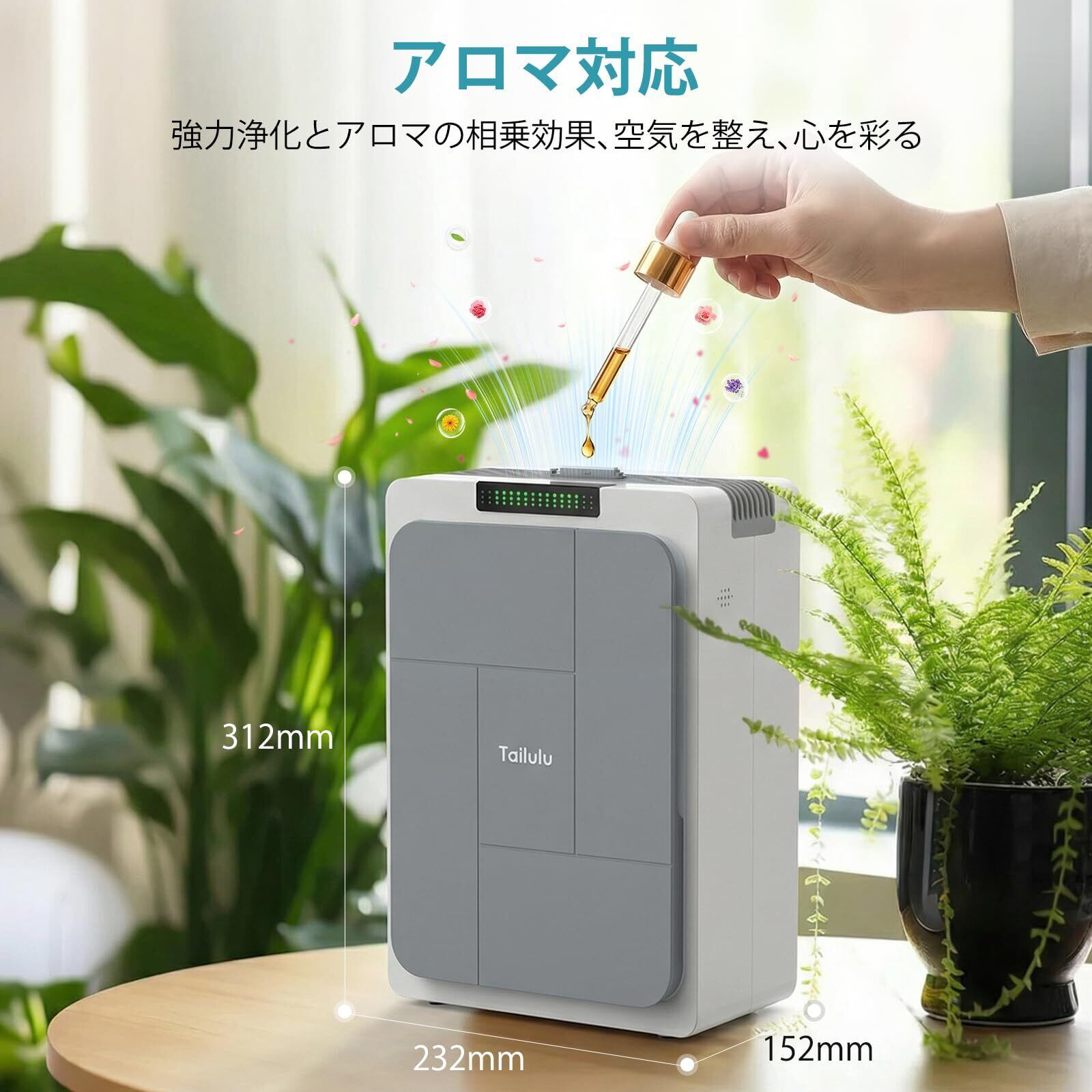 【アロマ機能・心地よい香り広がる】 空気清浄と同時にアロマの香りを楽しめる機能を搭載。お好みのオイルを使用すれば、広いリビングがリラックス空間に早変わり。ペットのニオイや生活臭を抑えながら、清潔感あふれるお部屋作りをサポートします。ギフトとしても喜ばれるコンパクト空気清浄機です。