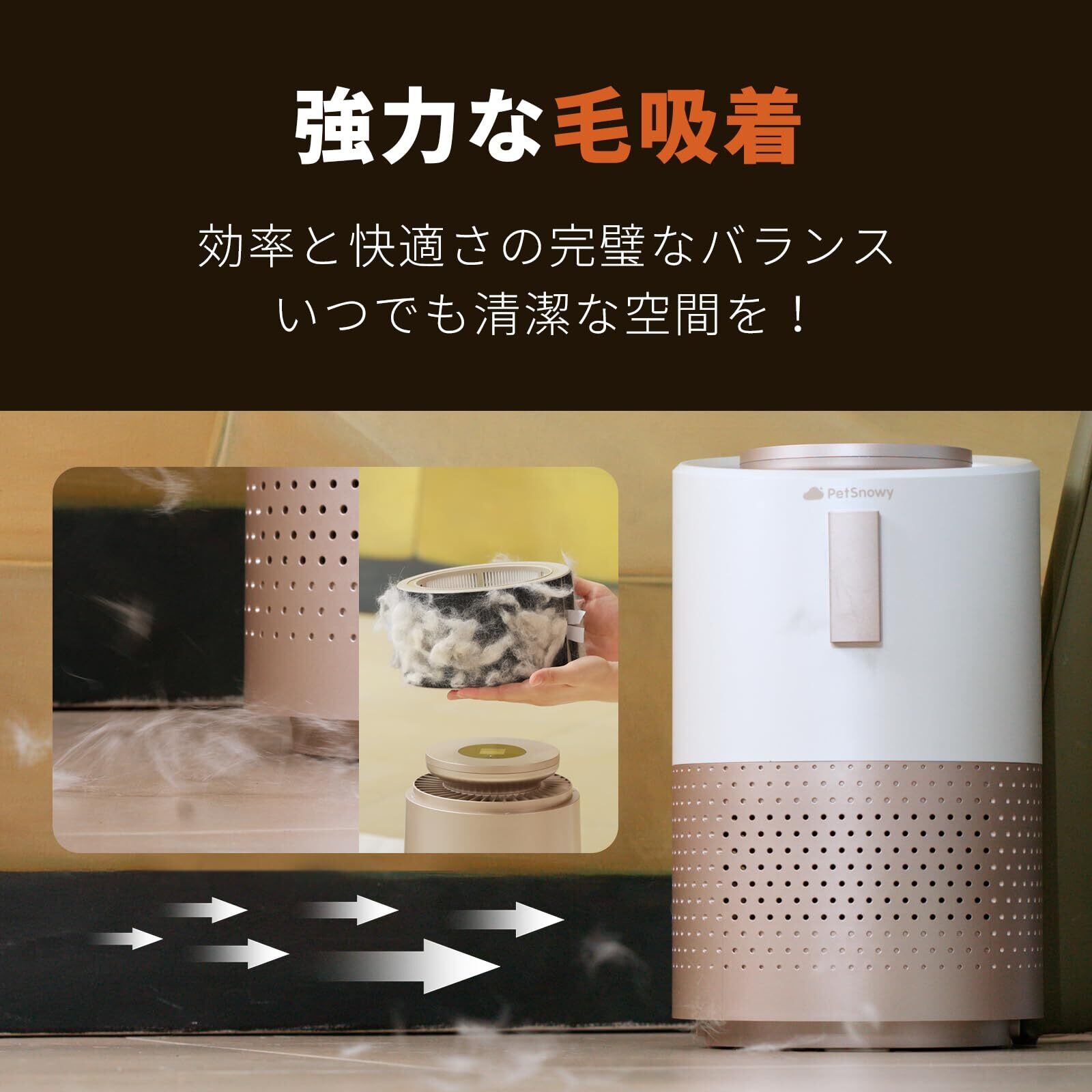 PetSnowy 空気清浄機 ペット特化モデル TiO2臭気制御 空気品質監視 花粉対策 アレルギー 省エネ ペット向け H13高効率フィルター 小型