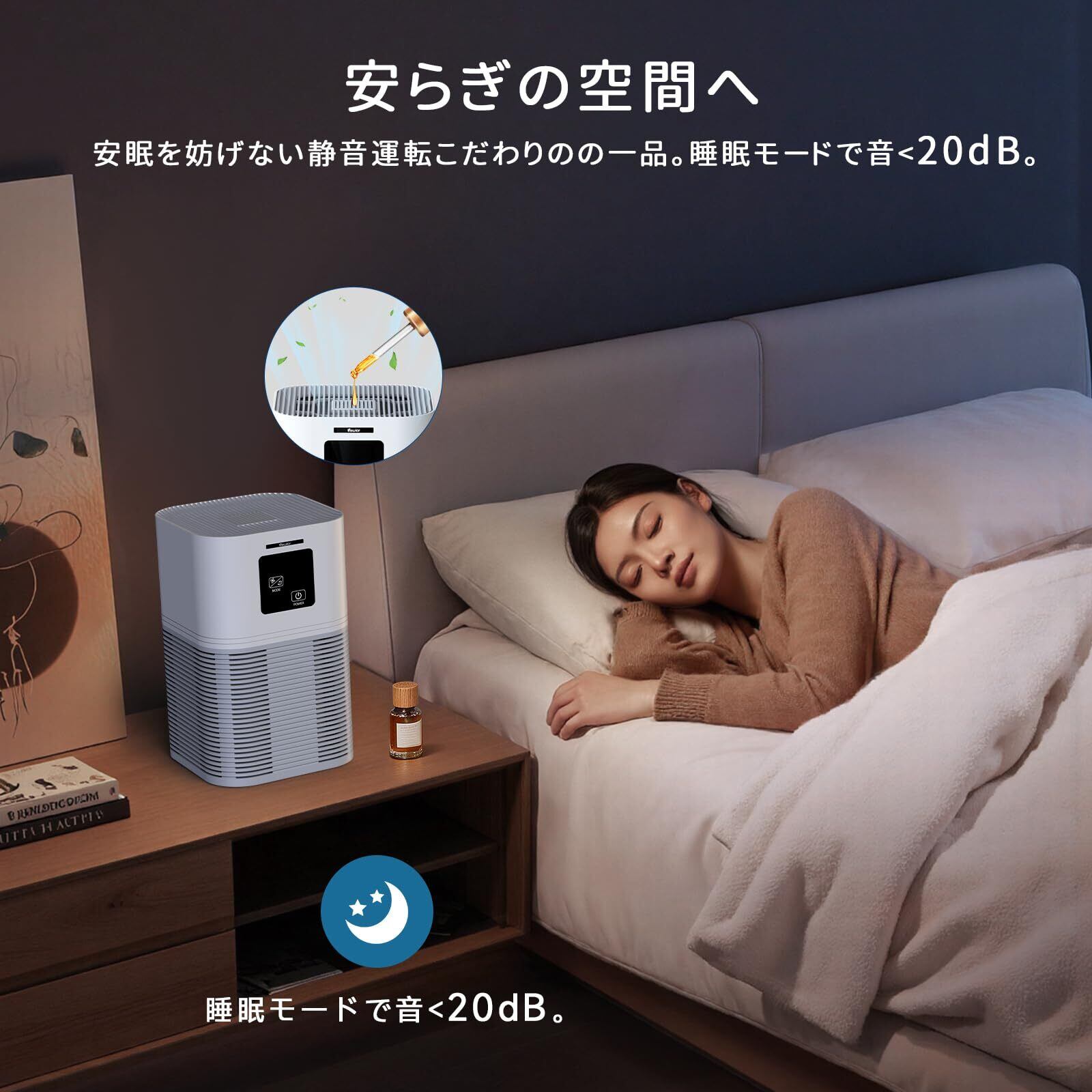 【アロマ対応・小型・操作簡単】12~38畳対応、寝室、リビング、玄関、トイレ、キッチン、オフィス、ペットのそばでも活躍します。空気清浄機 アロマ対応なので、お好きアロマオイルををパッドに数滴入れて、部屋の空気を清浄しながら香りも楽しめ、一日のストレスが解消されます。コンパクトで場所を取らず、場所を移動したい時も軽くて持ち運びやすい小型空気清浄機です。操作パネルがわかりやすくて、若者はもちろん、お年寄りも簡単に操作できます。花粉季節や夏の雨季に、小型 空気清浄機が大活躍します!