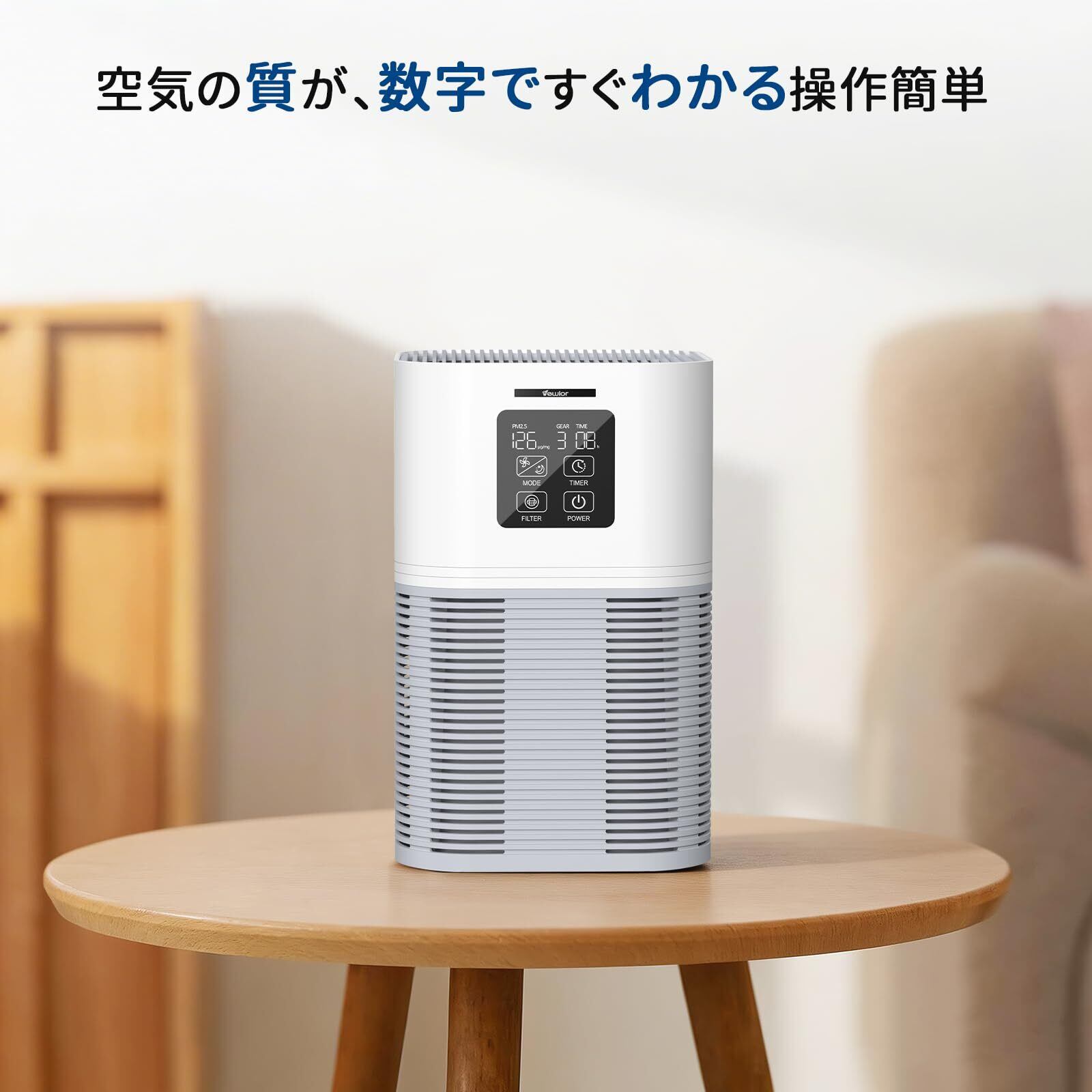 【4段階風速調節・6級タイマー】空気清浄機は「睡眠モード・弱・中・強」4段階風速を調節可能、お部屋の空気の状態に合わせて風量が調整できます。※注:風速調節モード 1、2、3 は、それぞれ弱風速、中風速、強風速です。また、風速モードのボタンを4回目押すと、音がとても静かな睡眠モードに入ります。空気清浄機は「2h・4h・6h・8h・10h・12h」の6段階タイマー機能が搭載されて、お好みに合わせて選択できて、外出際や就寝時に非常に便利です。設定した時間が経ち過ぎると、空気清浄機は自動的にオフになります。