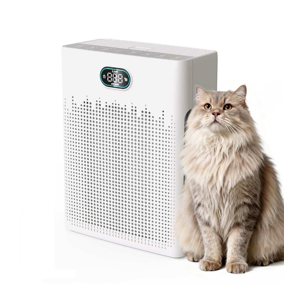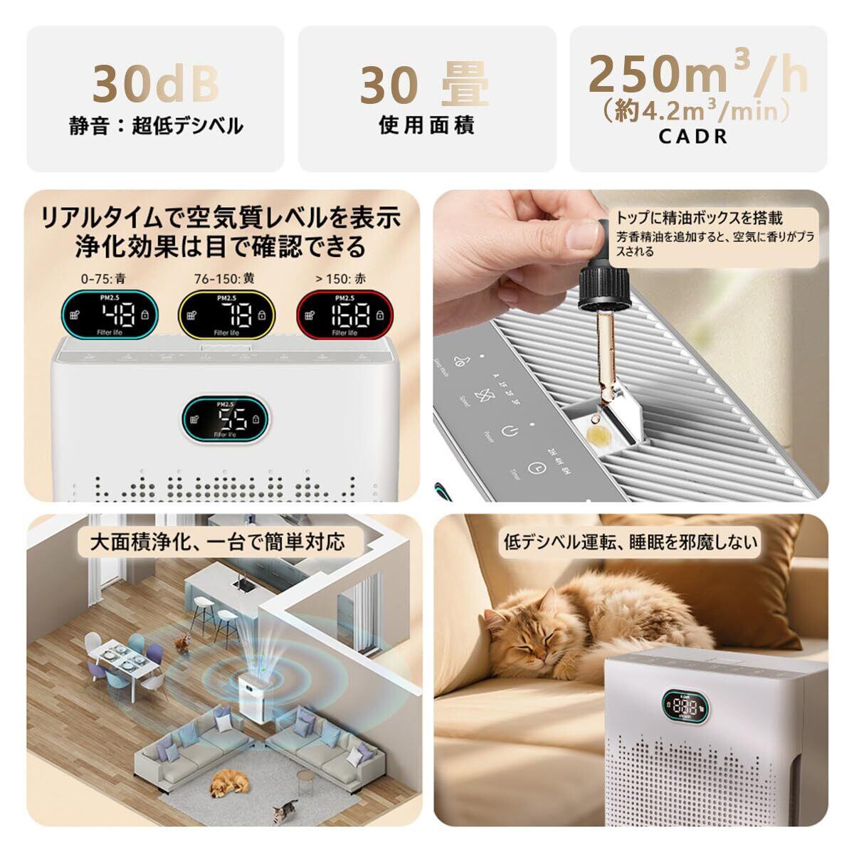 UEEYAC(ユーヤク) 空気清浄機 ペット用 花粉対策 20~30畳 CADR250m³/h H13 HEPA 4層フィルター 脱臭 強化 集毛 静音 省エネ アロマ対応 PM2.5リアルタイム表示 加湿なし PSE認証済 リビング 玄関用 小型 コンパクト(本体)