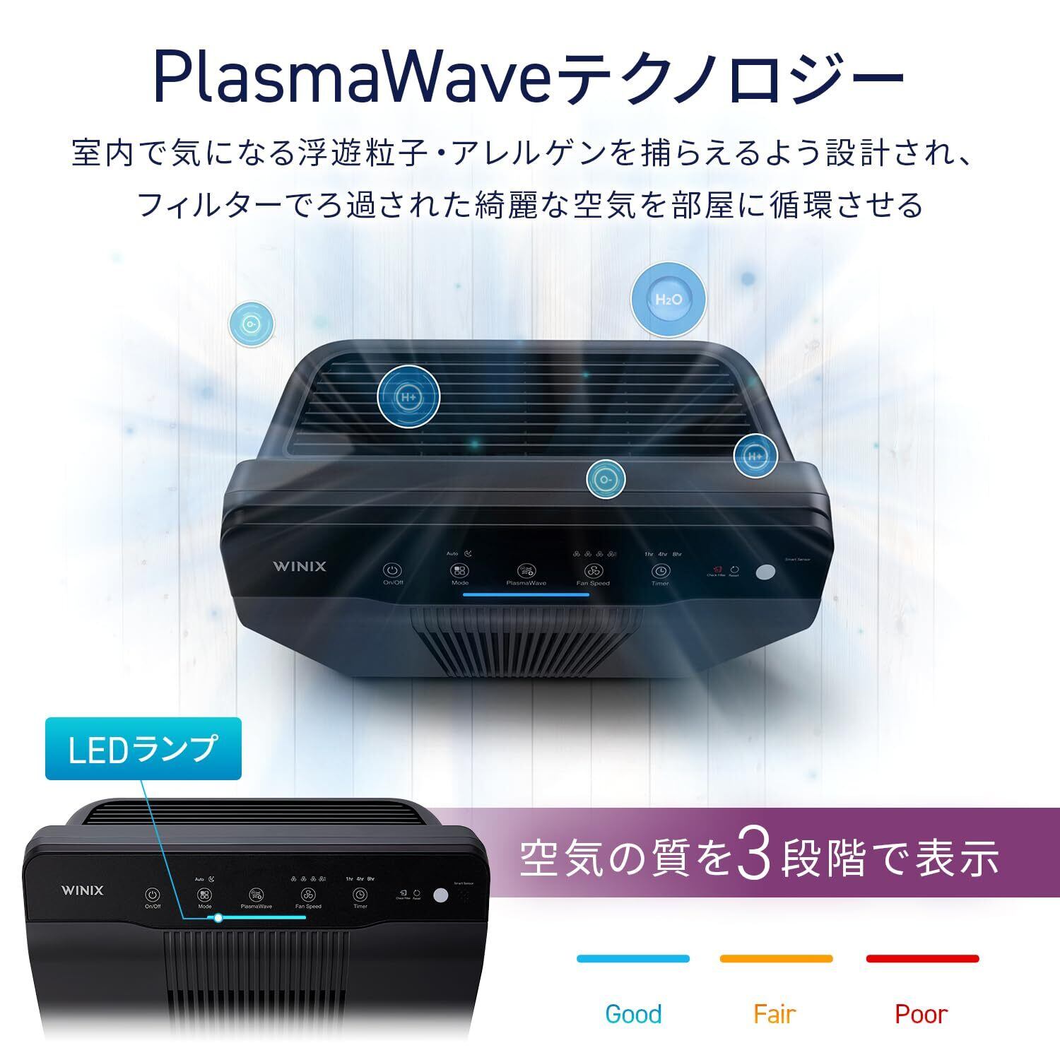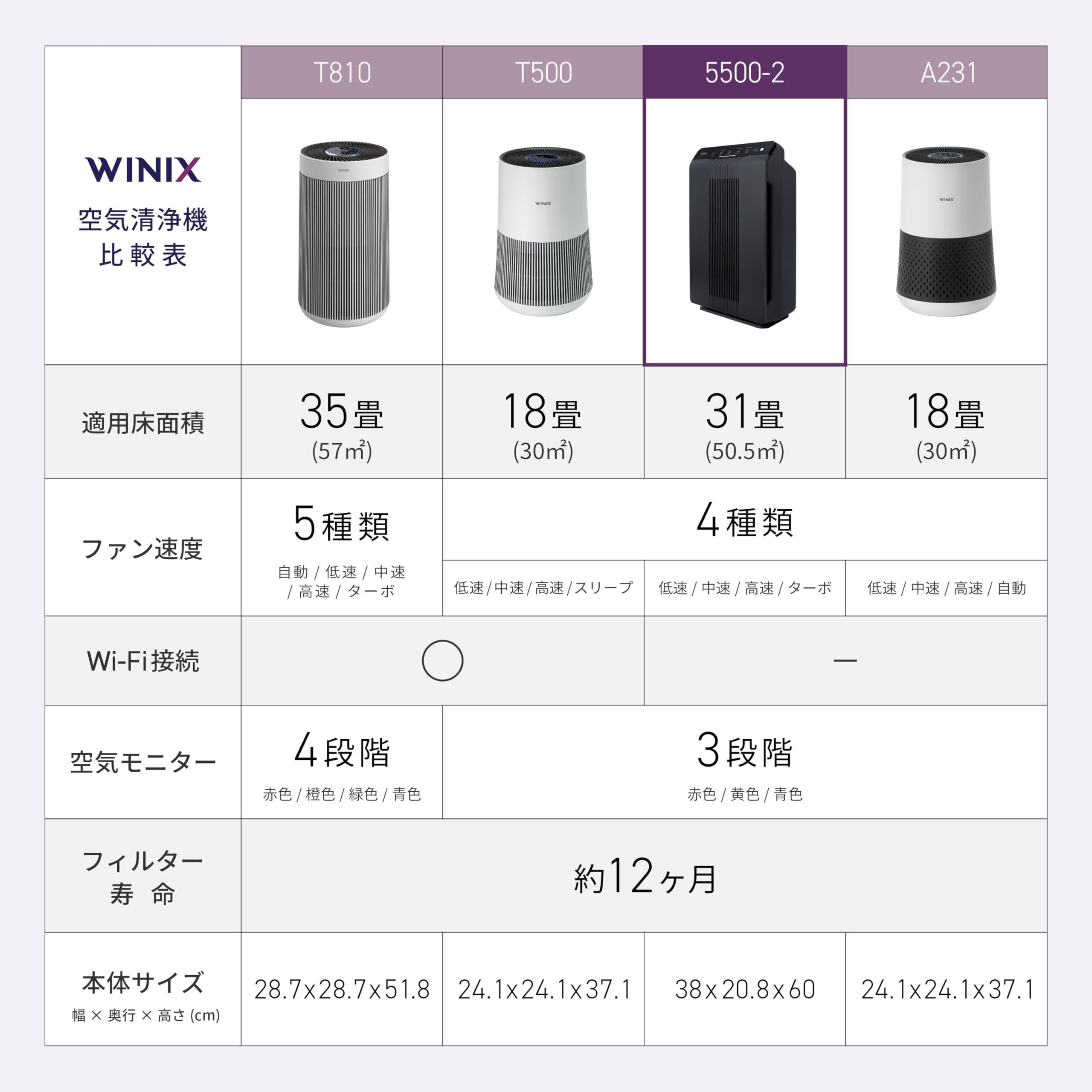 WINIX (ウィニックス) 空気清浄機 31畳 花粉 ほこり ペット 極超微細粉塵 アレルギー除去 4段階空気清浄 True HEPAフィルター スリープモード 節電 静音 ダークグレー 5500-2