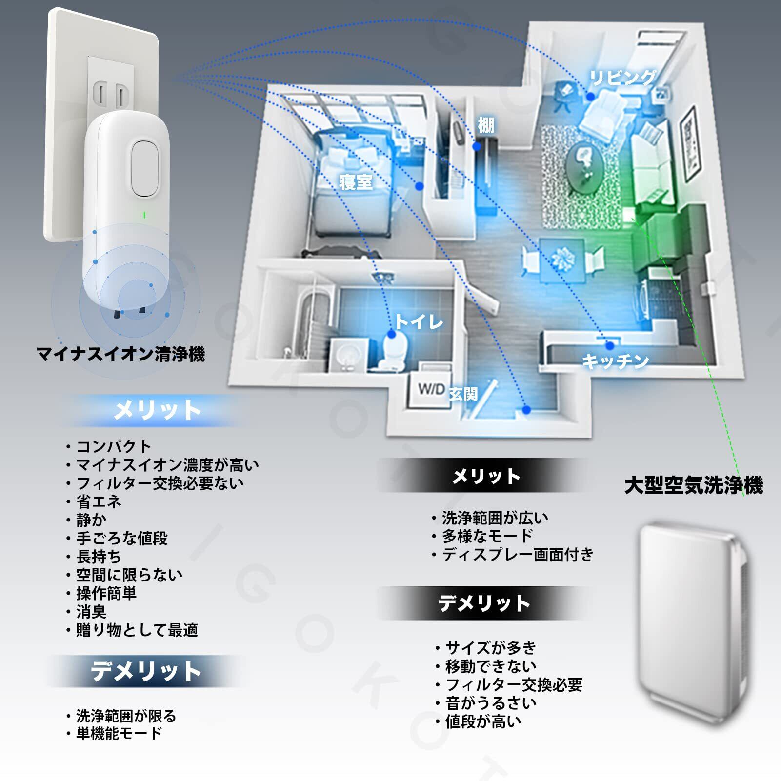 IGOKOTI 空気清浄機 マイナスイオン発生器 脱臭機 コンセント式 プラグ フィルター交換不要 PM2.5 空気浄化 ペット トイレ脱臭 小型家庭用空気清浄機 3個セット