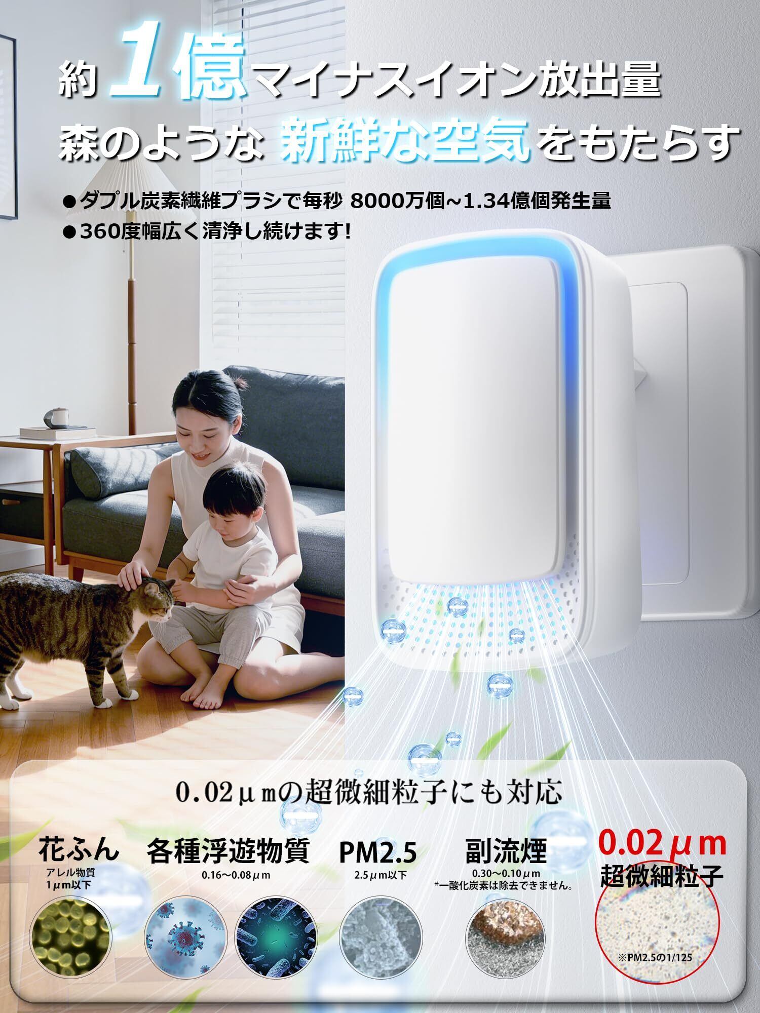 IGOKOTI 空気清浄機 脱臭機 ペット強力消臭 トイレ脱臭 マイナスイオン発生器 静音 軽量 小型ミニ空気清浄機 コンセントプラグ式 フィルター交換不要 家庭用 省エネ PM2.5 ホコリ 花粉 空気浄化 キッチン トイレ オフィス用 日本語説明書