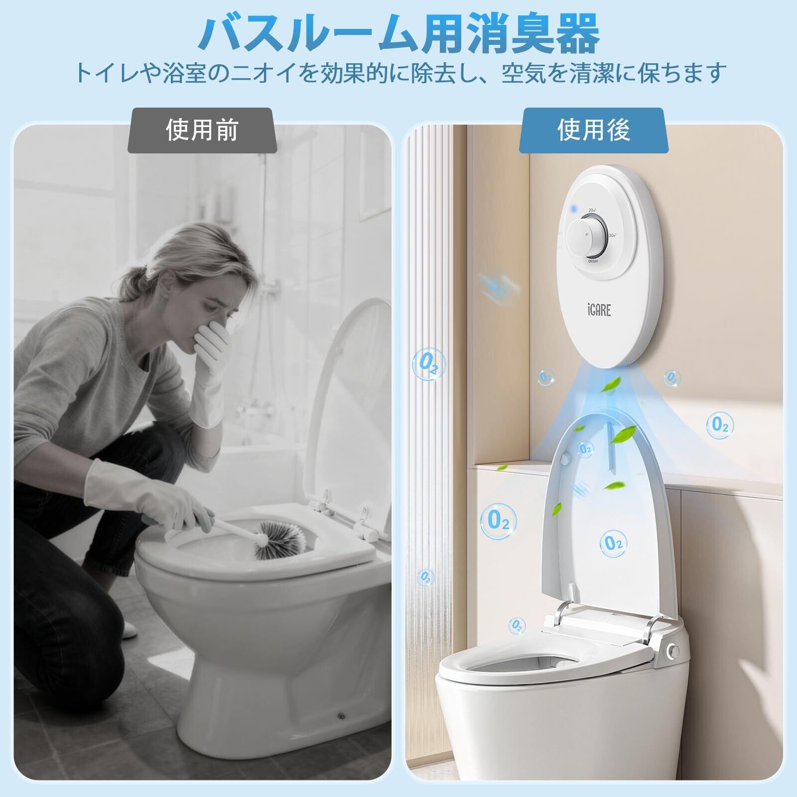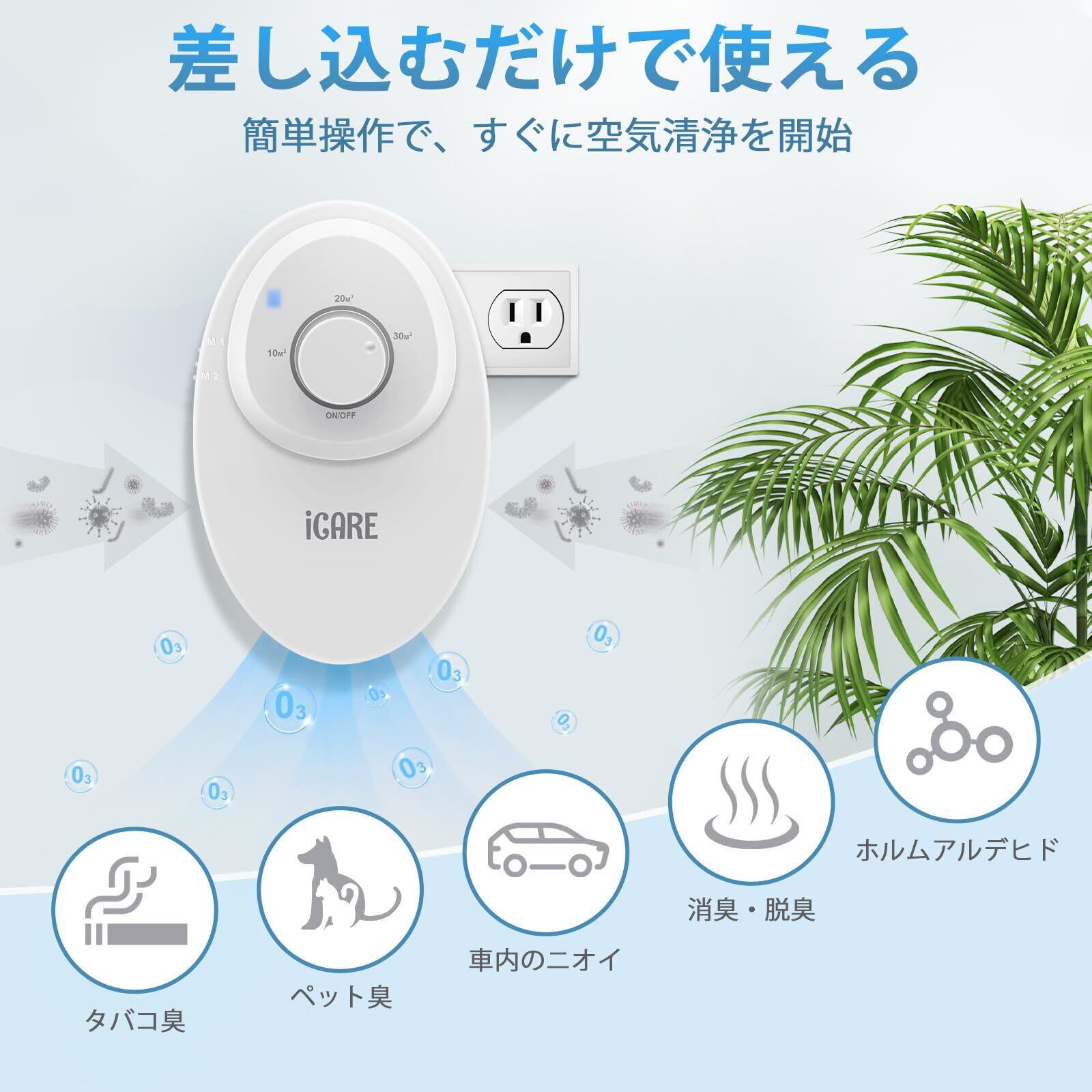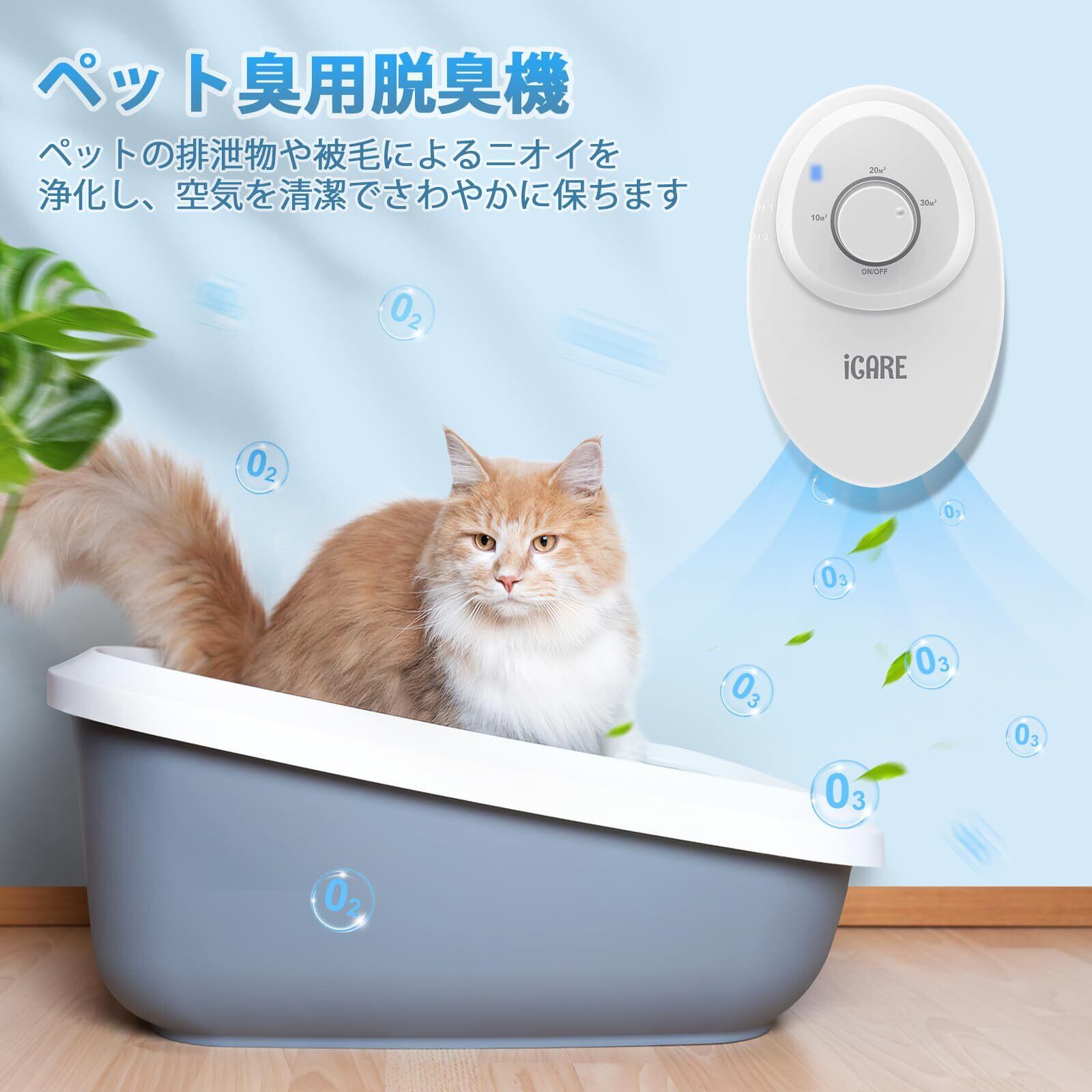 ICARE オゾン脱臭機:毎時120mgの低濃度オゾンを発生し、調理中の煙やペット臭やタバコなどの強いニオイを効果的に除去します。空気をリフレッシュし、不快な臭いを軽減することで、新築・リフォーム後の空気清浄や、日常的なニオイ対策、より清潔で快適な生活空間づくりに最適です。