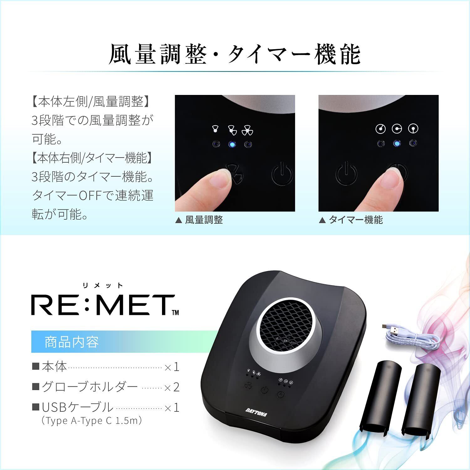 デイトナ(Daytona) バイク ヘルメット消臭機 乾燥機 プラズマイオン 3段階風量 タイマー付き グローブも対応 RE:MET(リメット) ブラック 19264