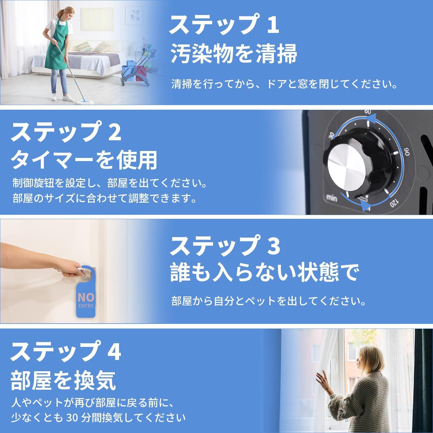 オゾン発生器 空気清浄機 最大300㎡対応 タイマー機能付き 家庭用/車用/オフィス用 静音設計 (黒, 60000mg)