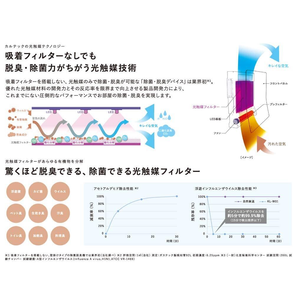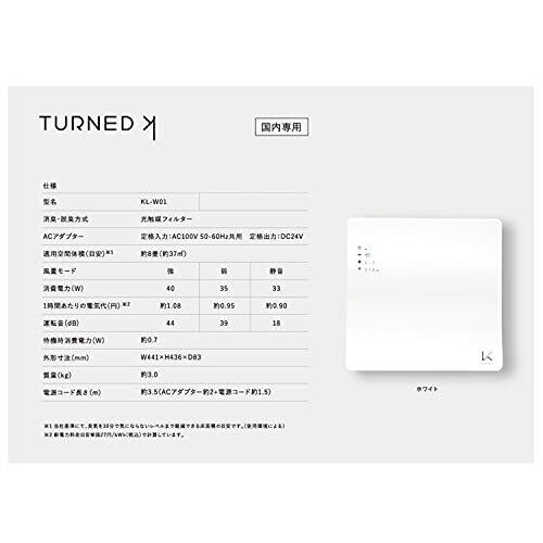 カルテック ターンド・ケイ 光触媒 脱臭・除菌機 浮遊ウイルス99.9%除去 フィルター交換不要 センサー感度切替モード搭載 スリム設計 TURNEDKW01