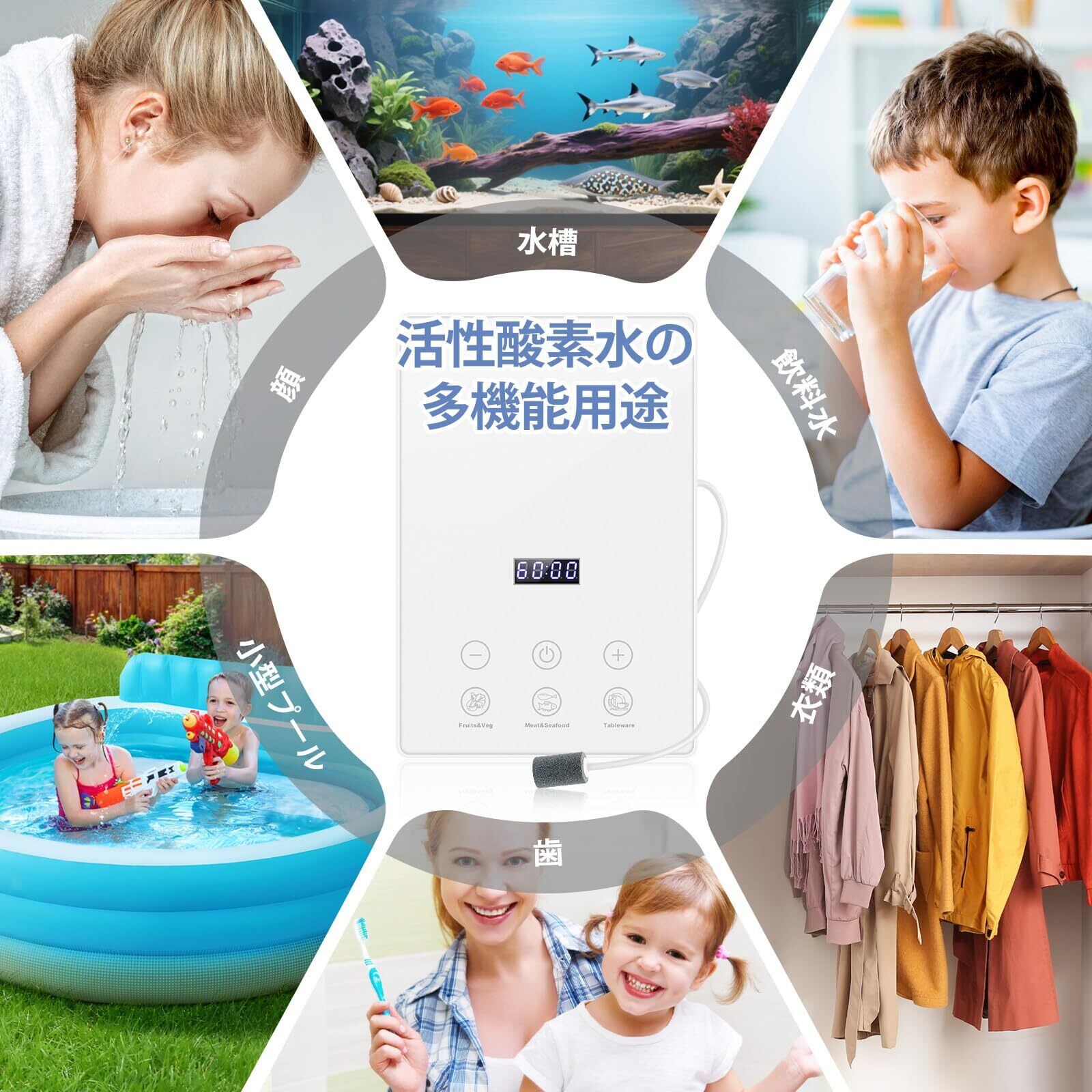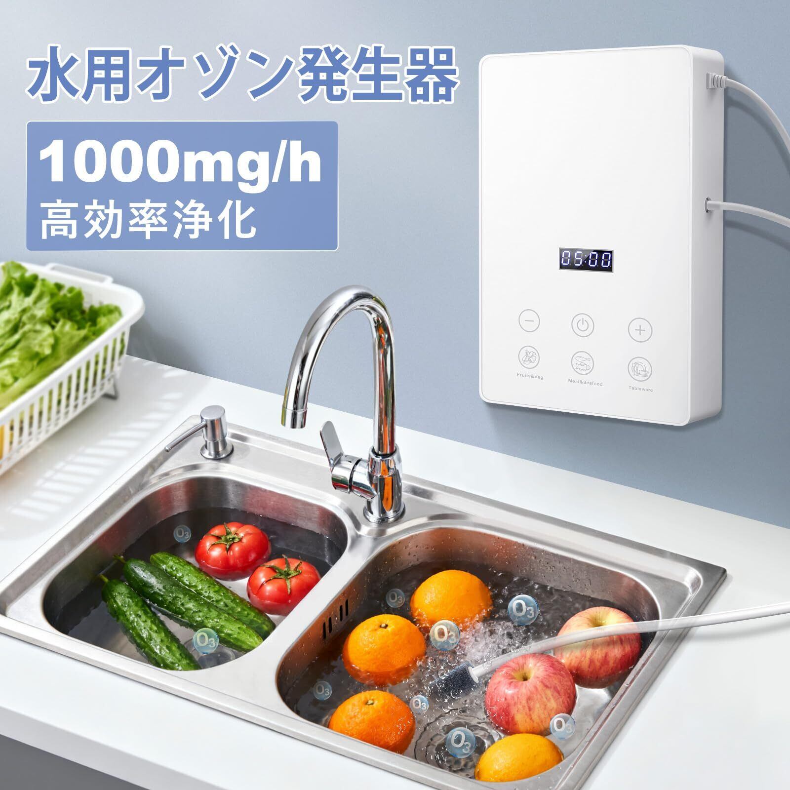 多機能オゾン水:3段階モードで野菜・果物の洗浄、肉類の除菌、食器・哺乳瓶の消毒などの高頻度ニーズに対応します
