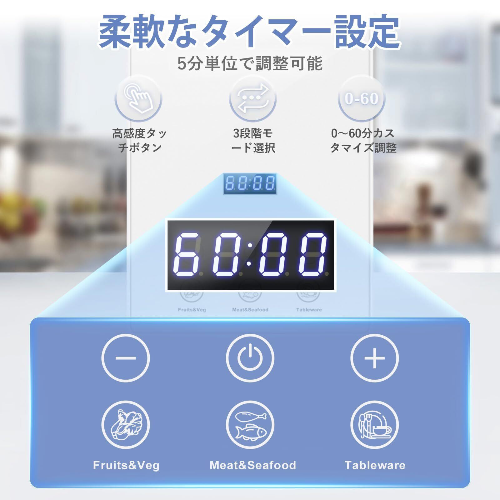 オゾン発生器 オゾン水生成器1000mg/hの高効率出力除菌 60分タイマー付き オゾン脱臭機 野菜・果物、肉類、魚介類、食器・哺乳瓶の浄化に適用 キッチン ホ一ム 車内 脱臭装置 消臭 日本語説明書付